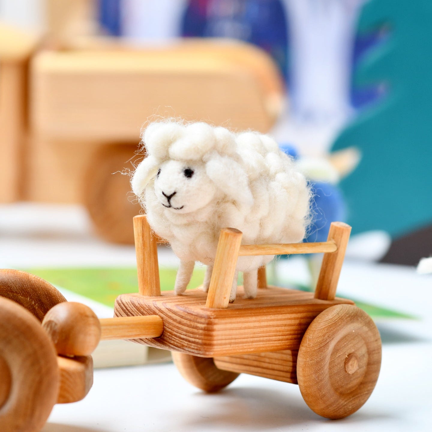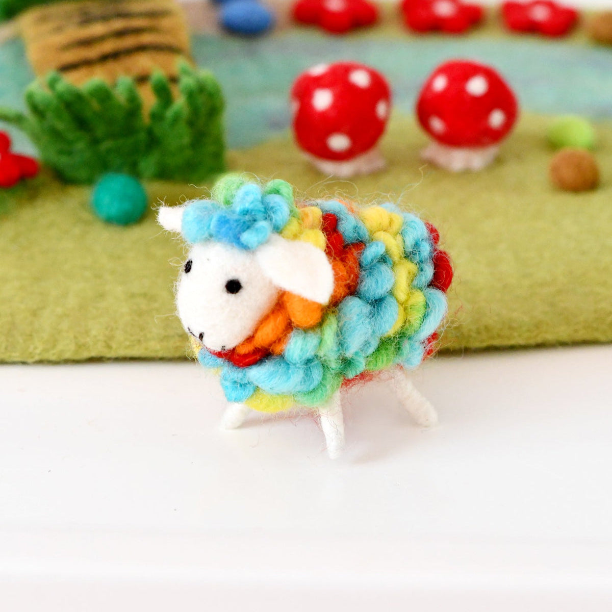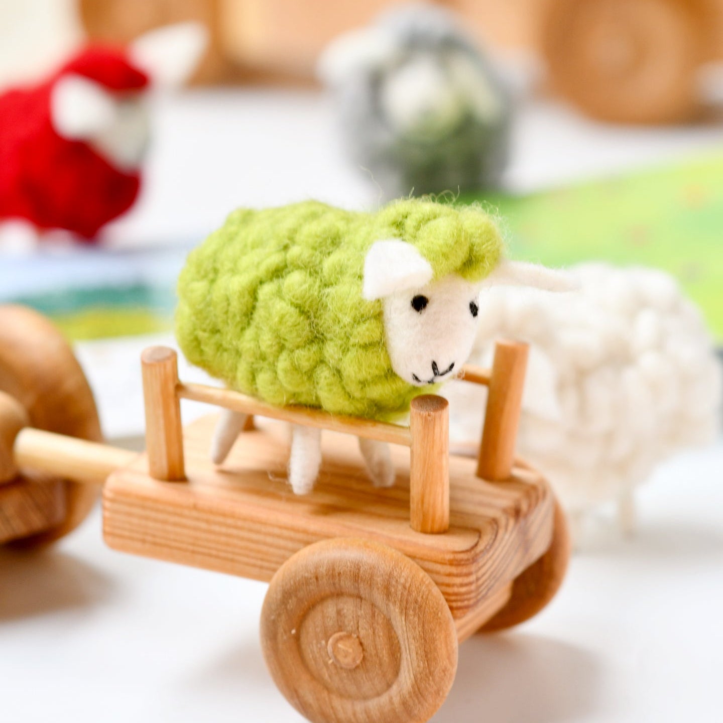 Here is the blue sheep, and here is the red sheep. Here is the bath sheep, and here is the bed sheep. But where is the green sheep?