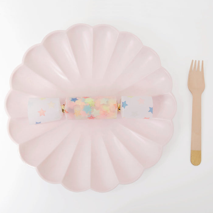 Make sure your celebration goes off with a bang by laying your table with these brilliant confetti crackers! Each one is elegantly decorated with beautiful multicolored glitter stars and filled with a temporary tattoo, a paper hat, a joke and plenty of confetti!