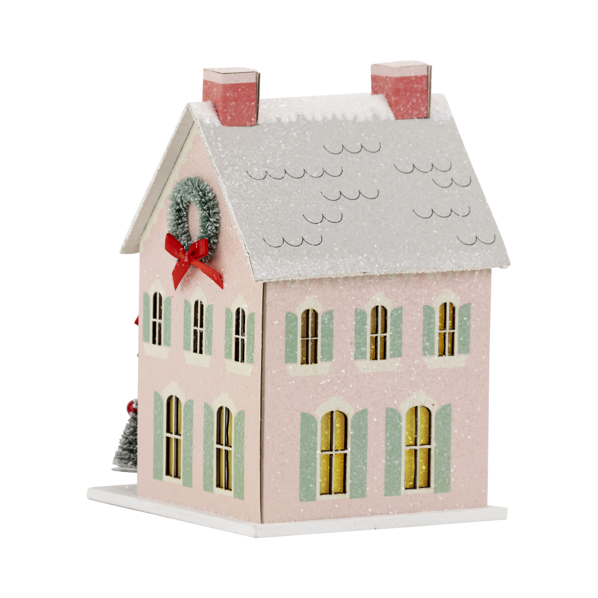 Add some sparkle to your holiday decor with our Christmas Village Merry House. Made of heavyweight paper with glitter accents, this charming village house will bring holiday cheer to any room. Perfect for creating a festive atmosphere and capturing the magic of the season.