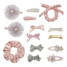 - Stocking contains 14 accessories including two velvet scrunchies plus 12 different hair clips in a range of soft pink, grey, glitter and metallic shades