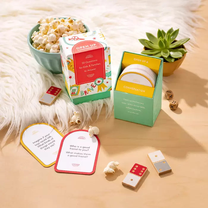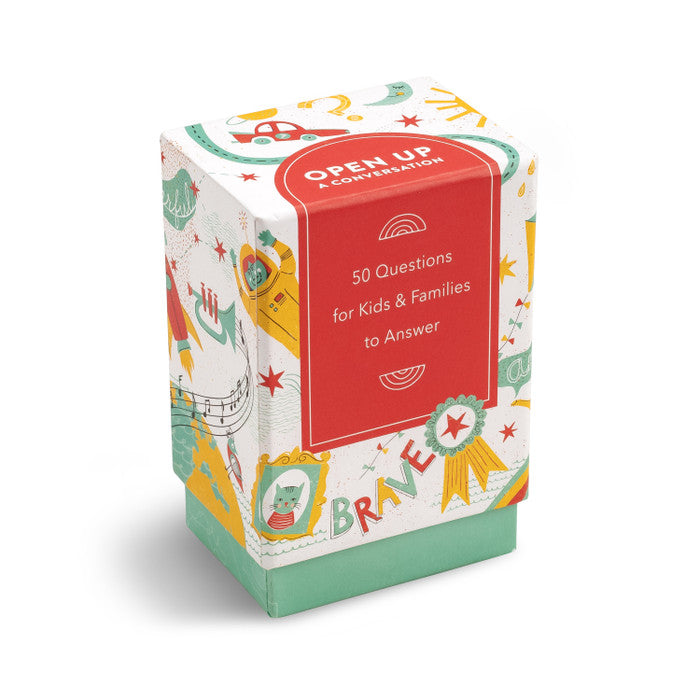50 Questions for Kids and Families to Answer' Connect with your child through playful discussions. Inside this box are 50 conversation starters—questions you can ask at the dinner table, before bedtime, or in the car. Every question is a chance to get to know your little one better and build their self-esteem. As you journey into a world of wondrous conversations, you and your child will love thinking creatively, listening actively, and making new memories together.