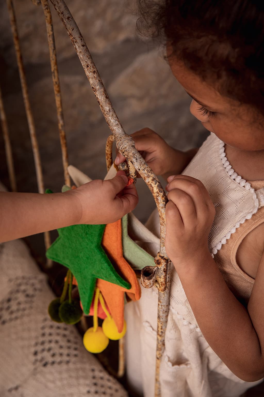 The woollen felt POMPOMS STAR from MUSKHANE is a decorative accessory that will embellish your home with elegance. Offering a star to someone, even to yourself, is a kindness. Being in the presence of a star, that’s quite something! Hung on a wall, a door, or a doorknob, suspended above a baby’s cot, or even from the ceiling with a transparent wire, you’ll find a place for it.