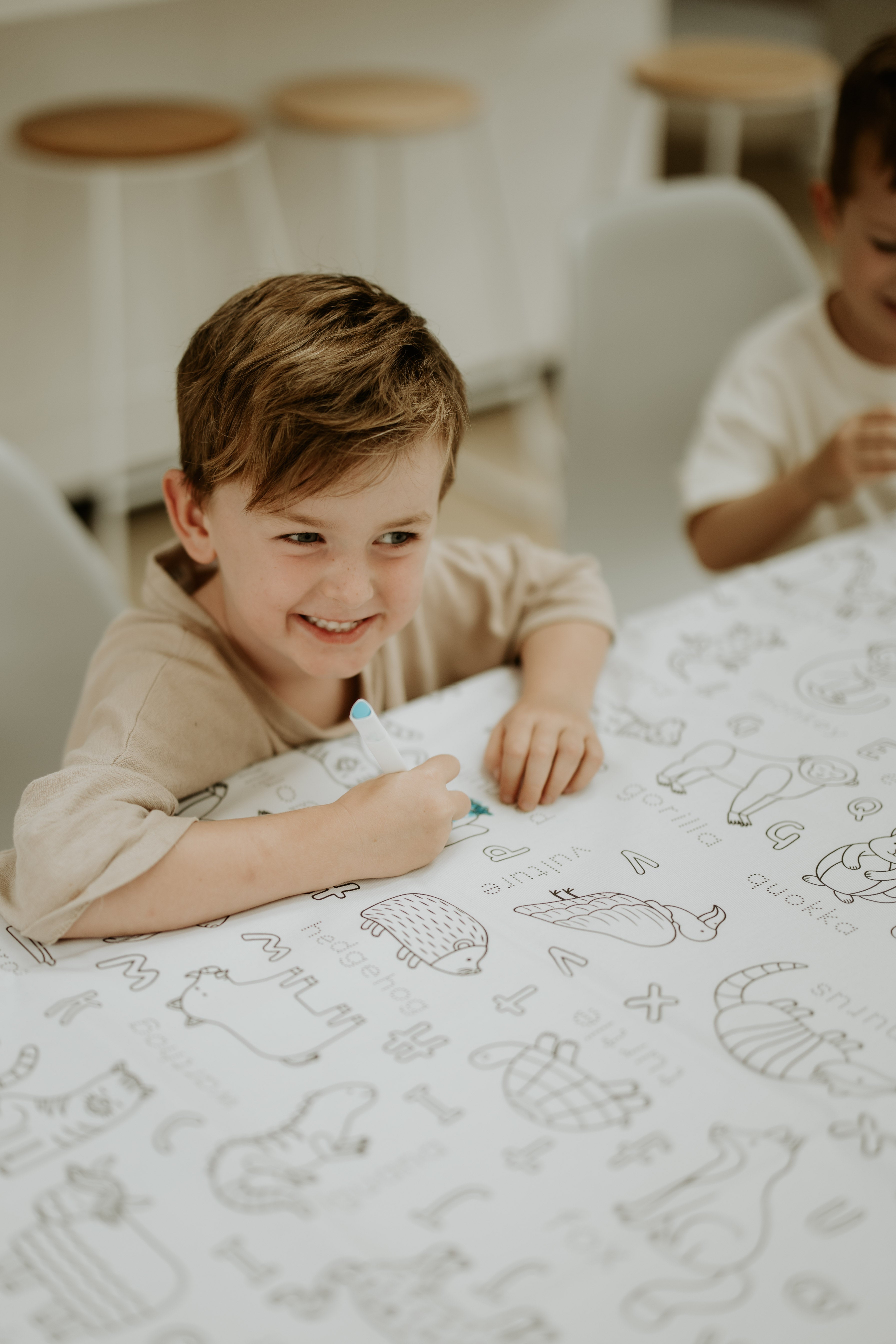 Make meals and playtime more creative, fun, and eco-friendly with our reusable colouring-in tablecloth - a must-have for parents, teachers, and caregivers who want to spark imagination and creativity in a sustainable way!