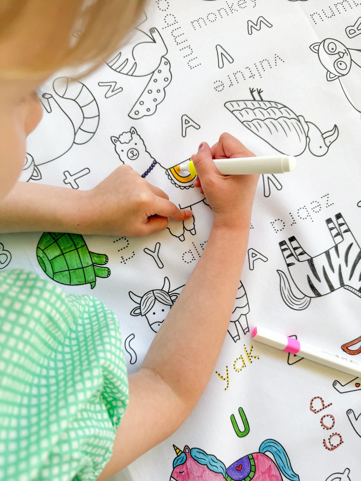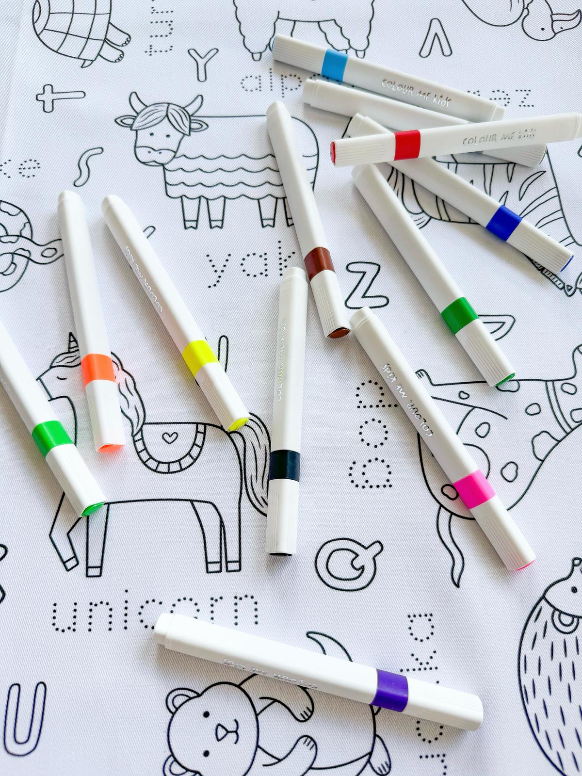 Bonus: The set comes with 12 ultra washable, non-toxic markers, perfectly sized with a triangular barrel for small hands to grip and control. They're safe, durable, and easy to clean - simply toss the tablecloth in the wash, hang to dry, and it's ready for the next artistic adventure!