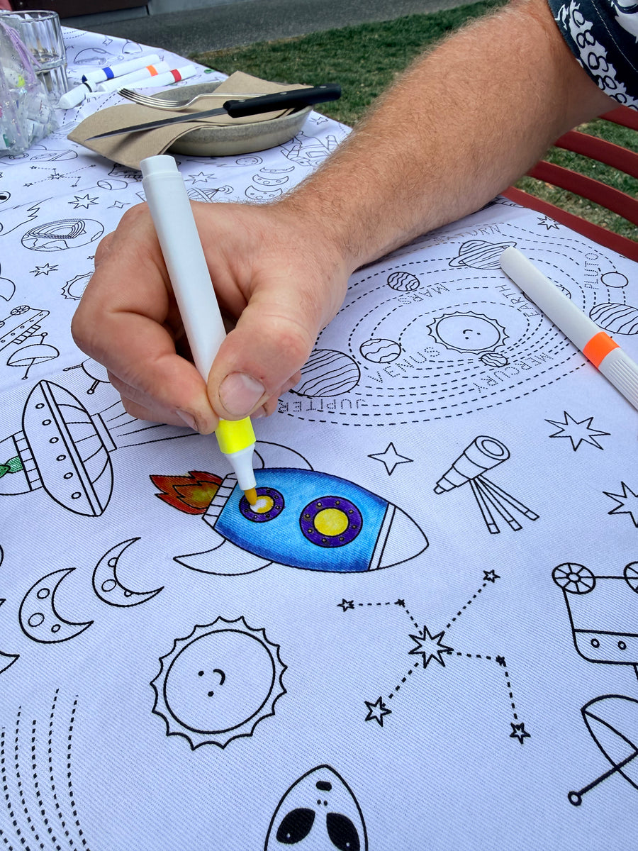 1x washable, waterproof, and reusable colouring-in tablecloth