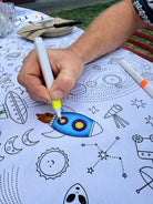 Bring the fun to family dinners, special occasions, or playdates with our exclusive washable, waterproof, and reusable colouring in tablecloth! Say goodbye to paper waste and endless printouts—this eco-friendly tablecloth is designed to keep your little ones entertained while fostering creativity and communication. All the fun, without the mess!