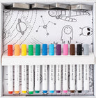 With 5 gorgeous prints to choose from, each kit comes with 12 ultra-washable, non-toxic markers and 4 tablecloth clips to hold the cloth in place while colouring - all packed into a beautiful box, ready for gifting.