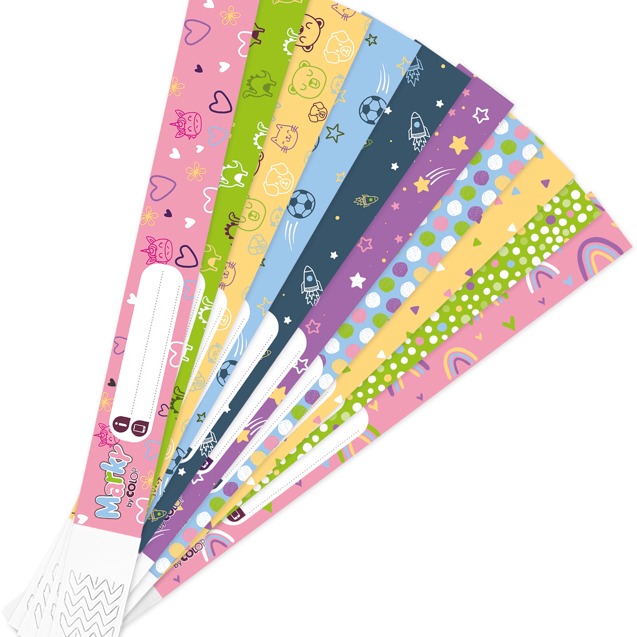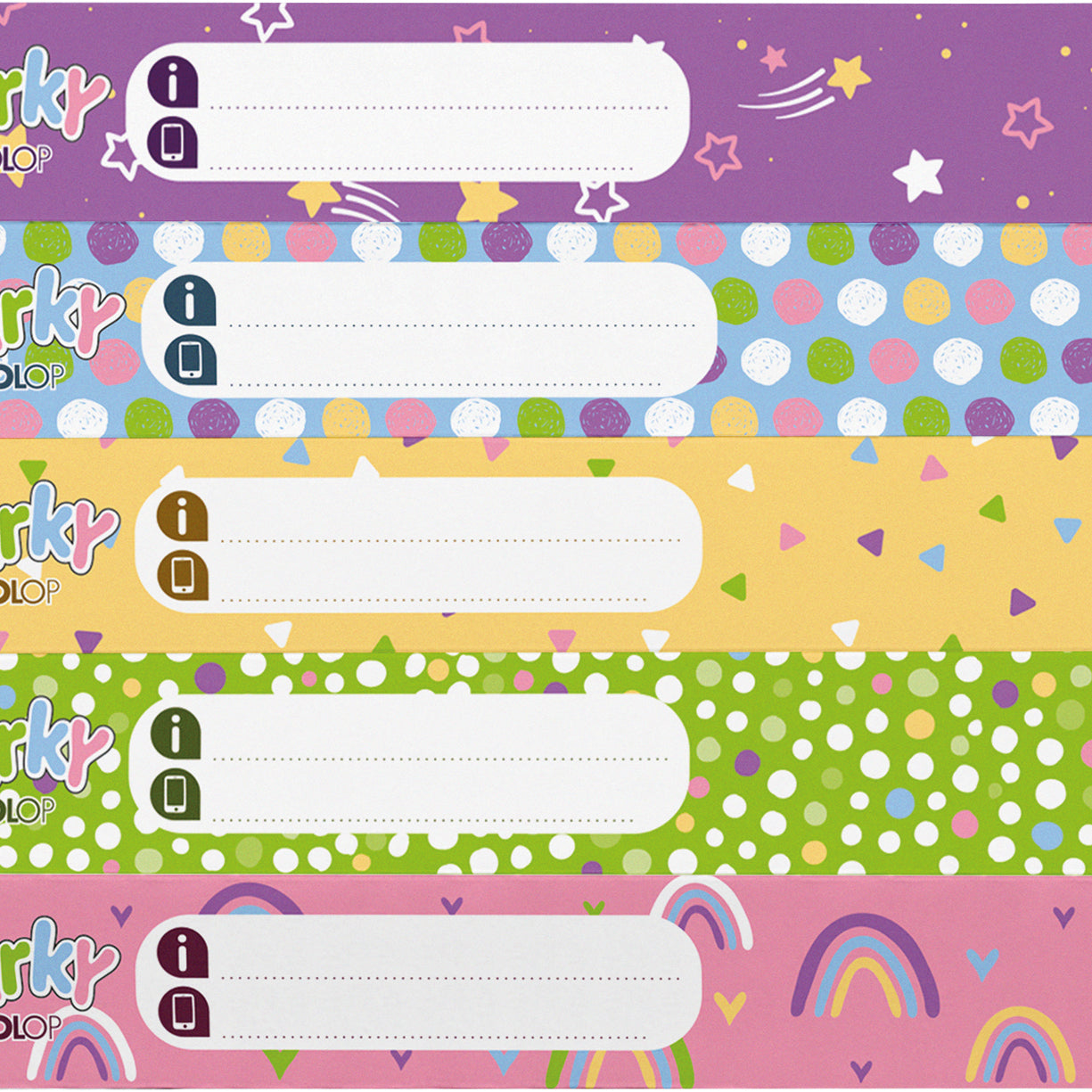 - Fun, colourful designs: Seven playful patterns (28 labels total) perfectly matched to Marky.