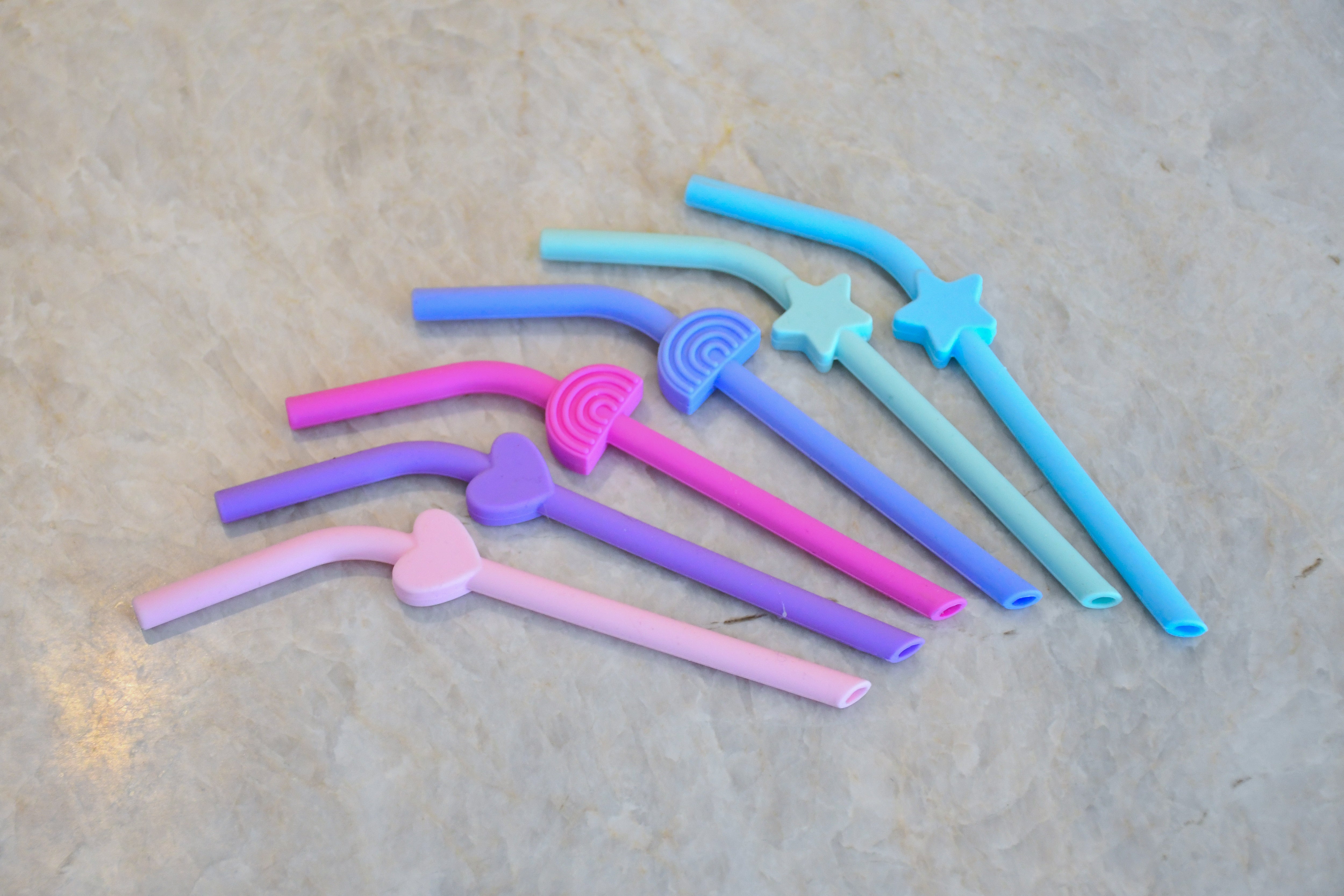 Melii Silicone Straws 6pk - Rainbow/Heart/Stars