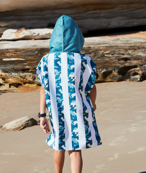 This mini poncho is perfect for keeping kids warm and dry at the beach after they've had their adventure. This quick-dry poncho also makes a perfect cover for kids to change in and out of your swimmers and drying themselves at the same time.