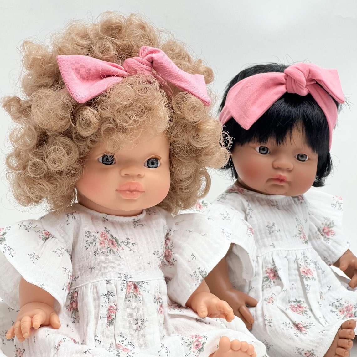 Miniland Doll Clothing 38cm | Dress + Headband | Pink Floral