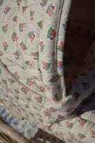 Our vintage style doll pram in a smaller version that is easy for little doll parents to maneuver. Designed with four large wheels that make it easy and stable to walk with, quilted fabric, and delicate scallop edges.