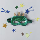 Let your imagination run wild with our dinosaur mask! Adorned in shimmering green and blue and a gold glittery spines!  Our sequin mask is backed with soft satin fabric and has a velcro fastening for safety. The perfect addition to imaginative play, or a fun addition to the dressing up box.