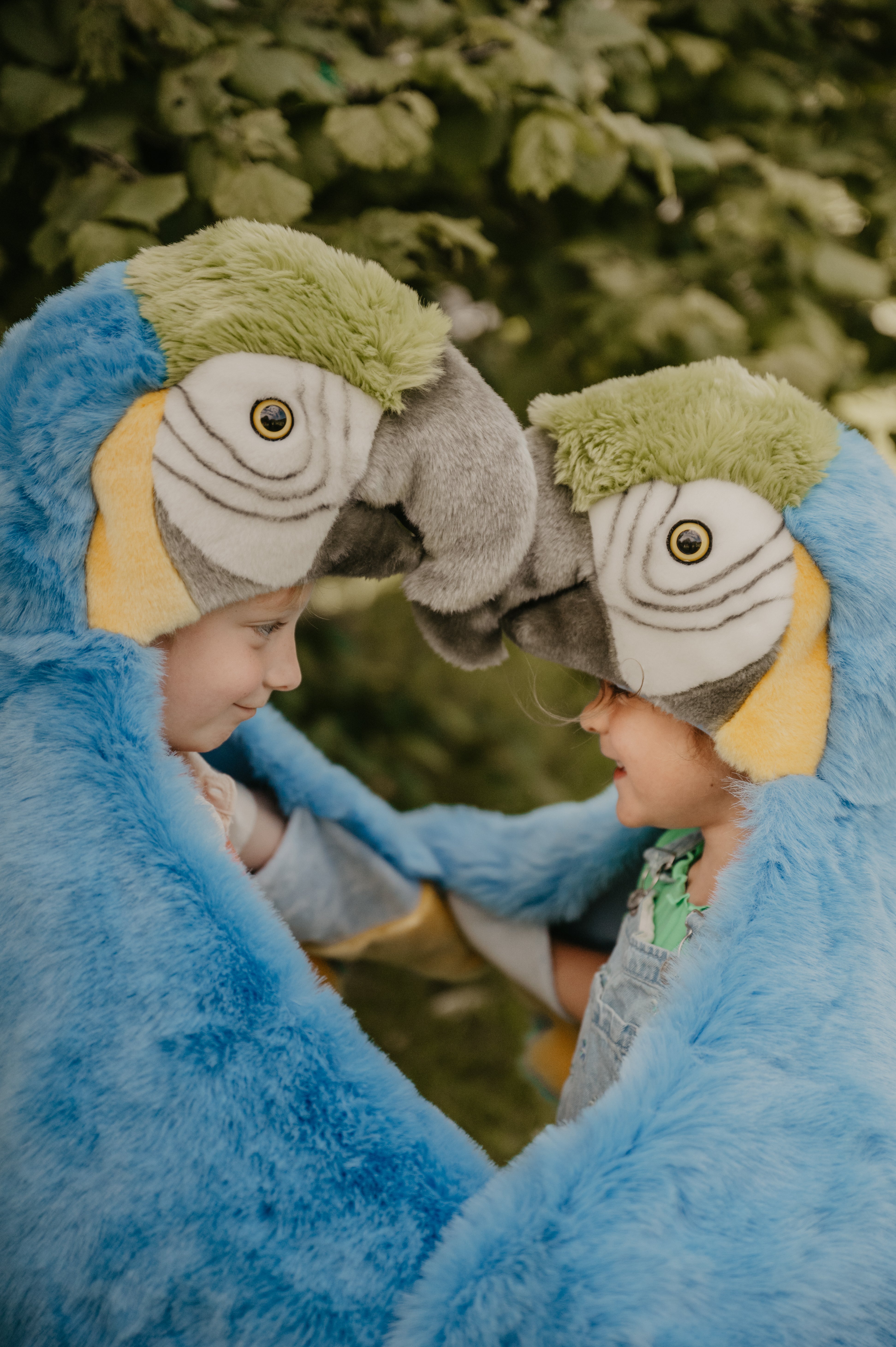 The animal costume can be used in many ways: as a fun costume, unique rug, a soft games mat or a warm blanket.