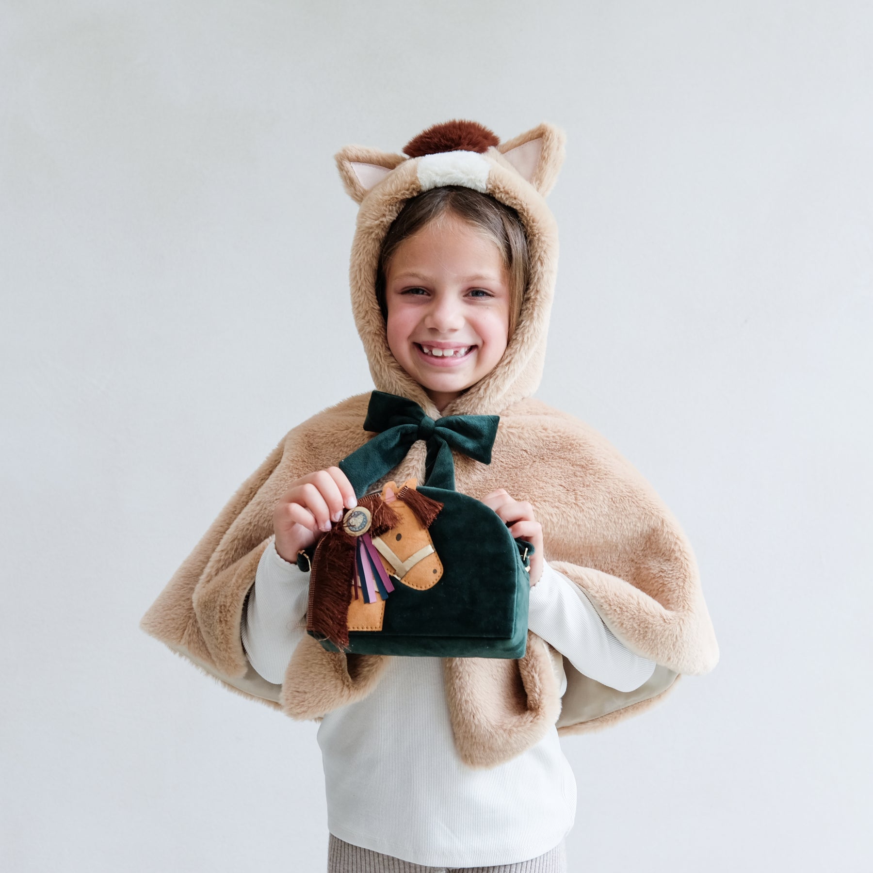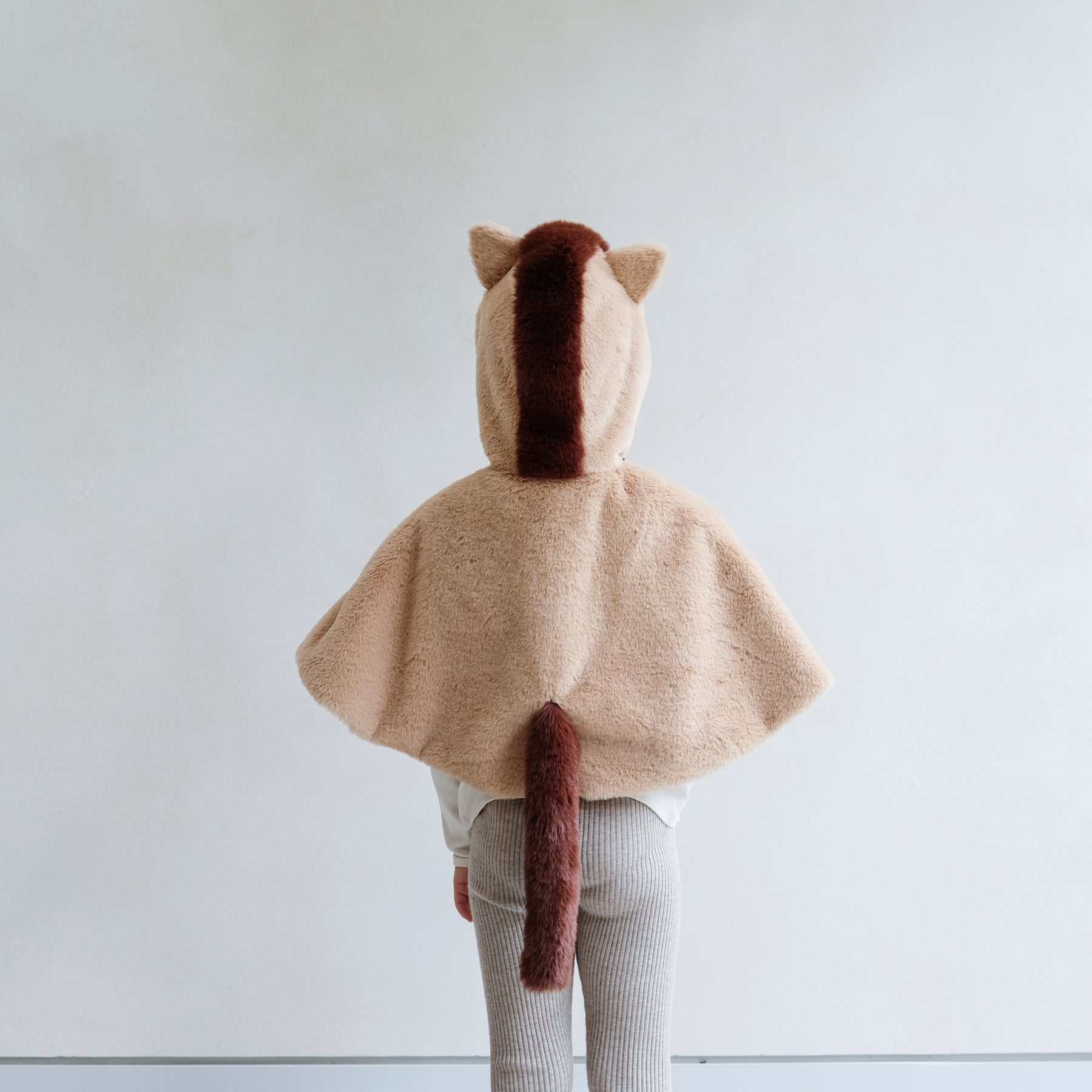 Gallop into playtime with our soft and fluffy new Horse cape! Featuring a hooded horsey head complete with fluffy mane and tail, this super sweet dress up piece is perfect for little pony enthusiasts!