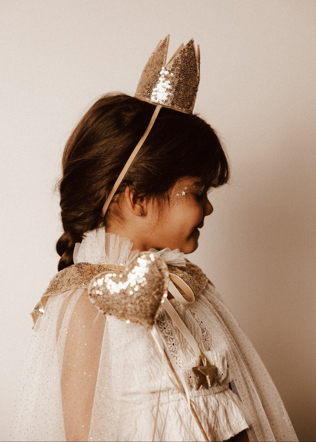 The "The Golden Queen" set is the most magical queen costume you will find. The pack includes a crown, a magic wand and a cape.