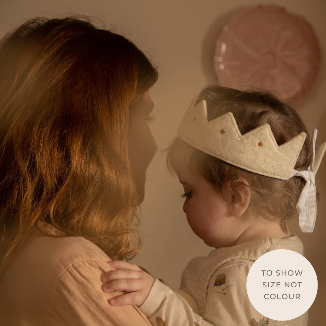 Here's the KUMARI CROWN for every head and every occasion! Whether you're a fair-haired boy, a tough girl or a daredevil, a king, a queen, a princess or a knight, there's something for everyone! Whether you're dressing up or decorating, this little crown will brighten up your everyday life and create a poetic, happy and festive atmosphere. Embroidered with little gold stars, it's made from sheep's wool and a cotton ribbon for tying. Handmade in Nepal, it comes in three colours.
