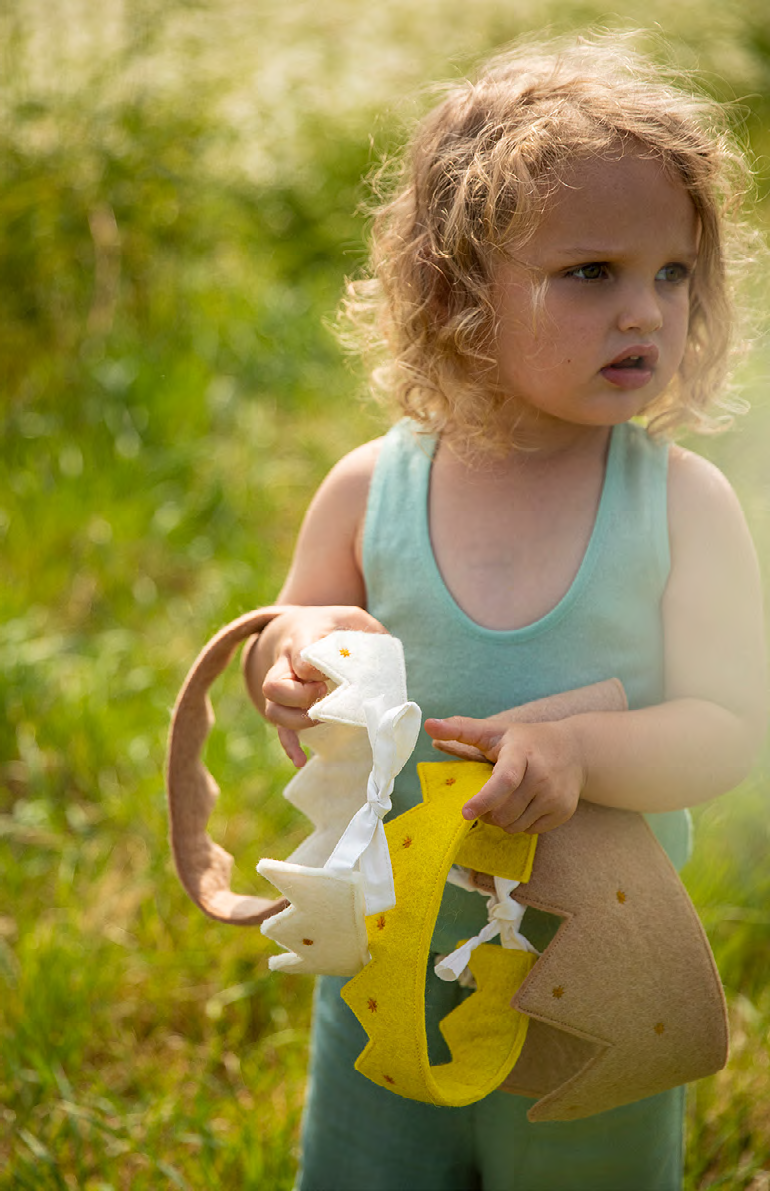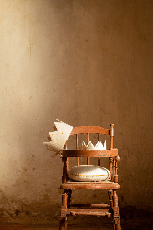 Here's the KUMARI CROWN for every head and every occasion! Whether you're a fair-haired boy, a tough girl or a daredevil, a king, a queen, a princess or a knight, there's something for everyone! Whether you're dressing up or decorating, this little crown will brighten up your everyday life and create a poetic, happy and festive atmosphere. Embroidered with little gold stars, it's made from sheep's wool and a cotton ribbon for tying. Handmade in Nepal, it comes in three colours.