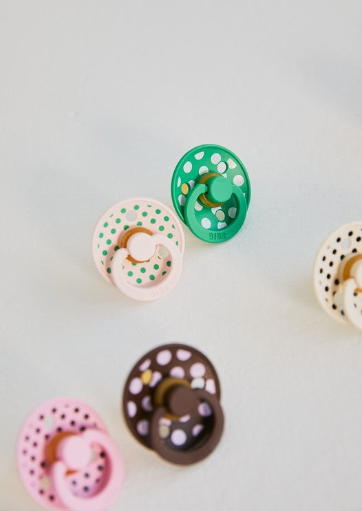 Fashion-forward prints meet a top-quality pacifier in BIBS Studio Collection featuring Polka Dots. Meet the iconic pacifier that BIBS was built on - a timeless favorite bringing comfort and joy to babies for over 45 years.