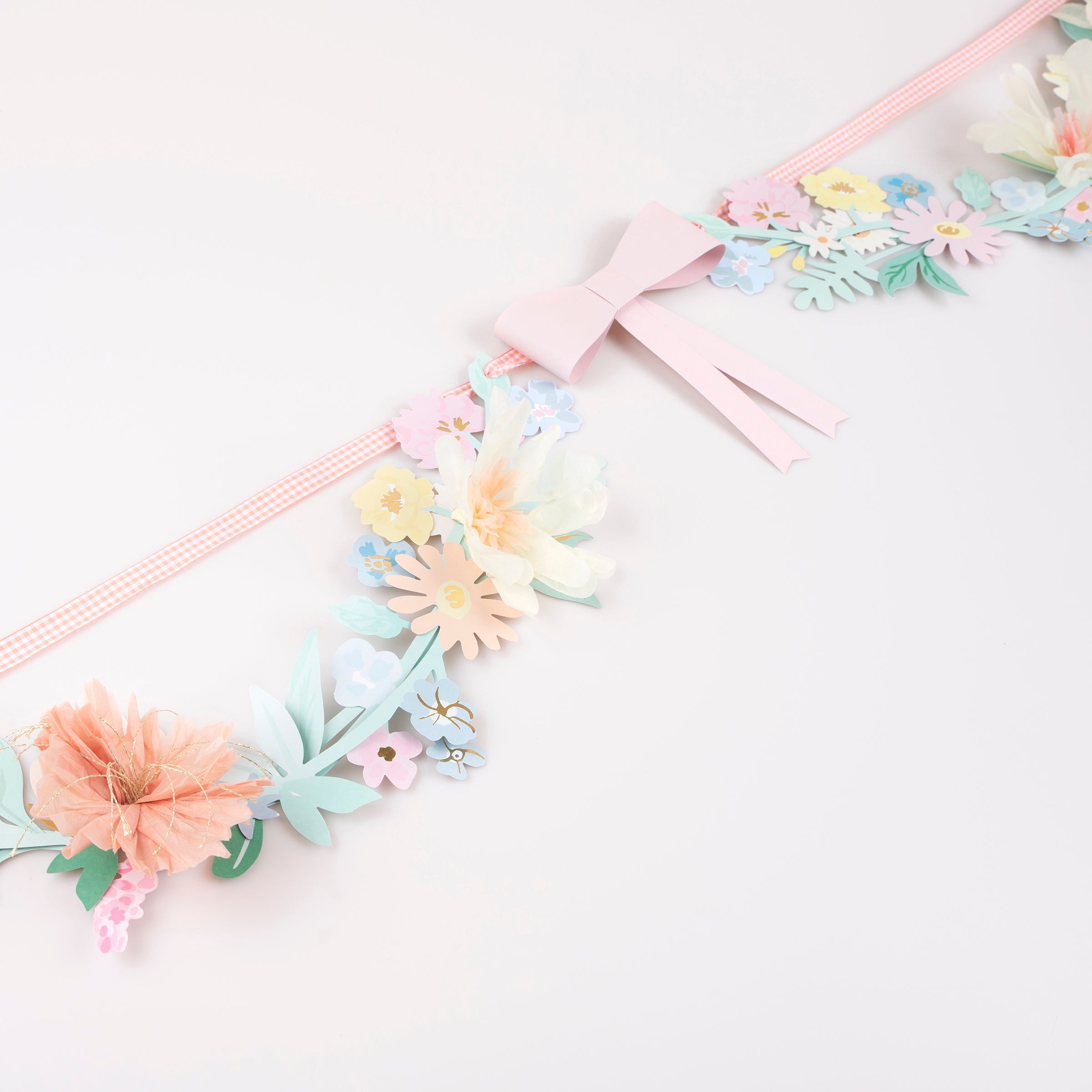 • The swags are made from paper with gold foil details and tissue paper flowers