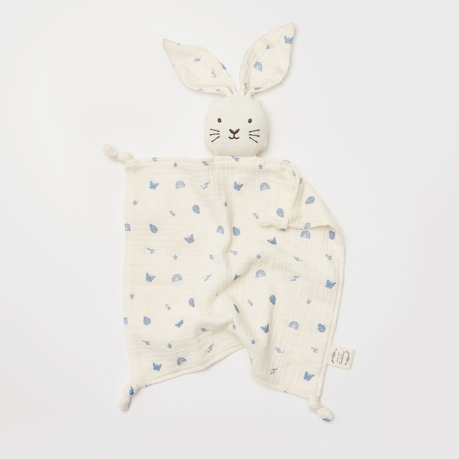The sweetest bunny security blanket made from 4 layers of super soft GOTS certified organic muslin.