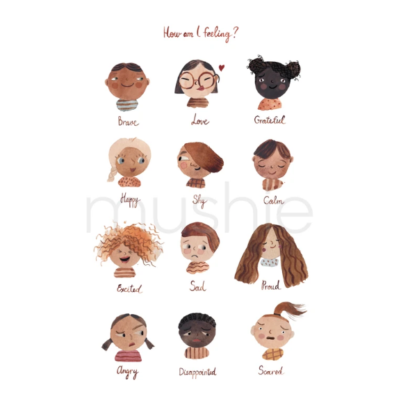 Help your child begin to understand how others are feeling and recognize their own emotions with this charming, beautifully illustrated poster. Designed in Sweden, it's part of our series of prints that combine whimsical themes and soft colors with modern design.