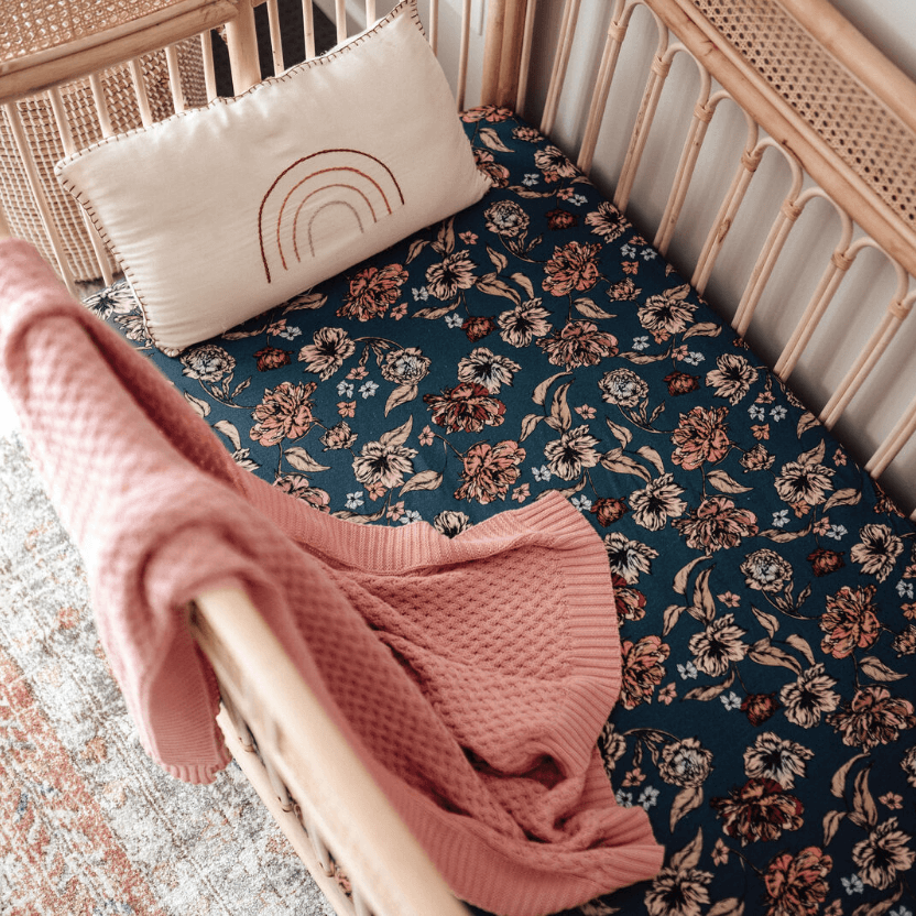 Snuggle Hunny Fitted Cot Sheet is made from snuggly soft stretch cotton jersey. Comes with a matching drawstring storage bag which can be used for other multi-purposes.