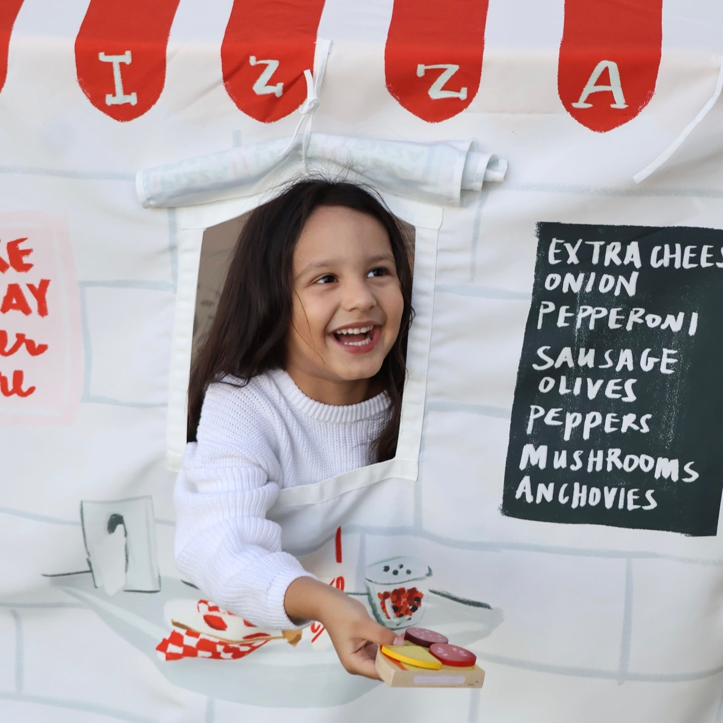 Ciao, Ciao! Welcome to Flippi Pizza, the best restaurant in all of Flippi World. Take a seat, grab a menu and get ready to feast. You can be the chef and serve your creations or dine-in and enjoy the meal.