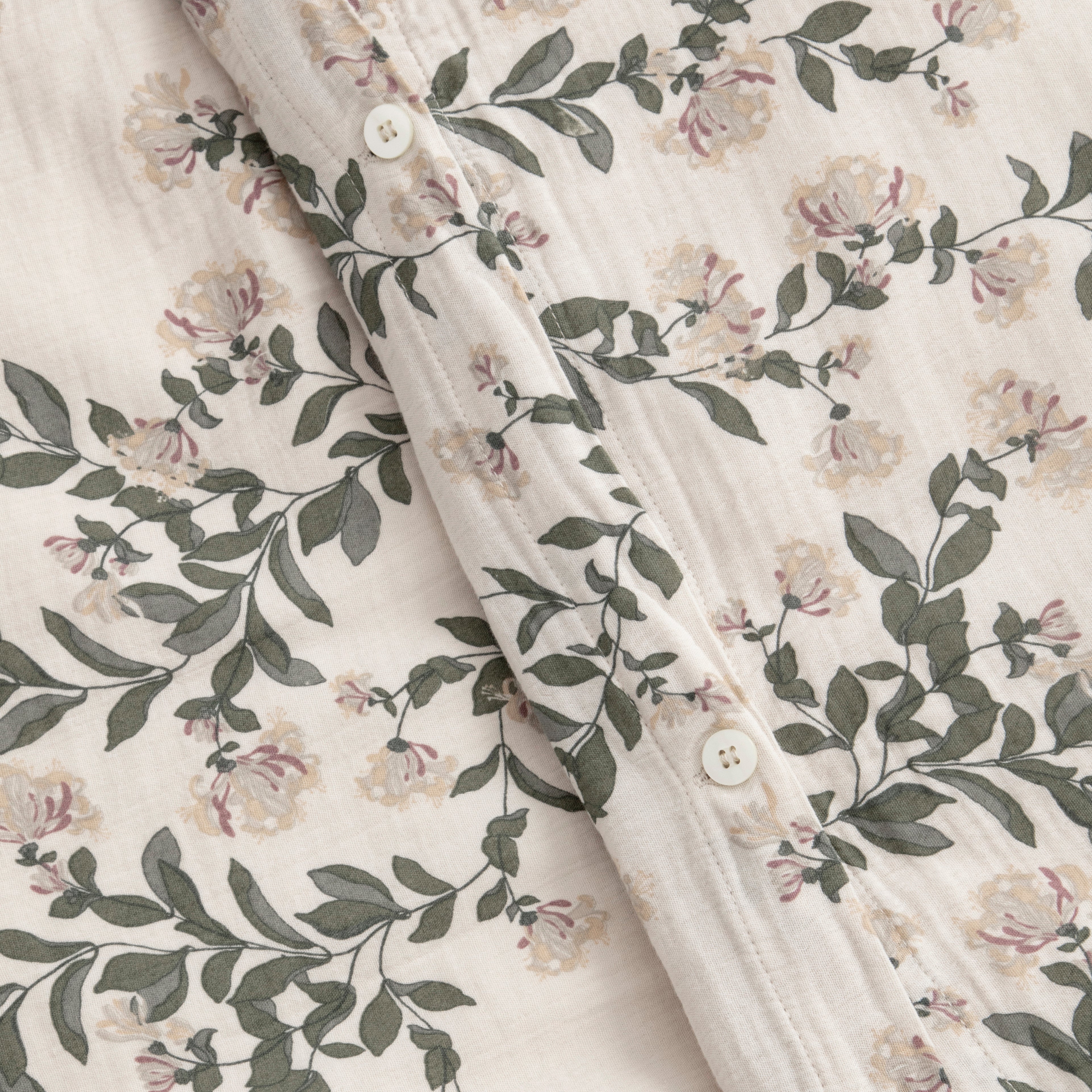 Honeysuckle is the most fragrant and beautiful of vines, with its clusters of colourful florals that almost looks like they are smiling in the warm sunshine, it has a definite home in the Garbo floral line. Our Honeysuckle pattern is set on a light sandy background and features two tones of green climbing vines along with florals in yellow, gray and muted purple.