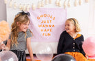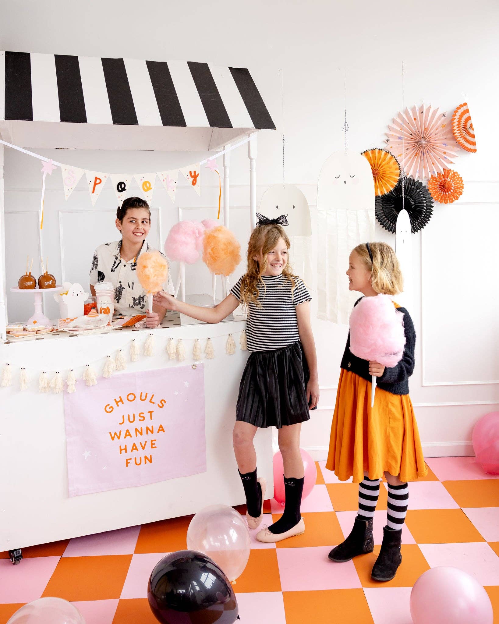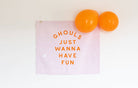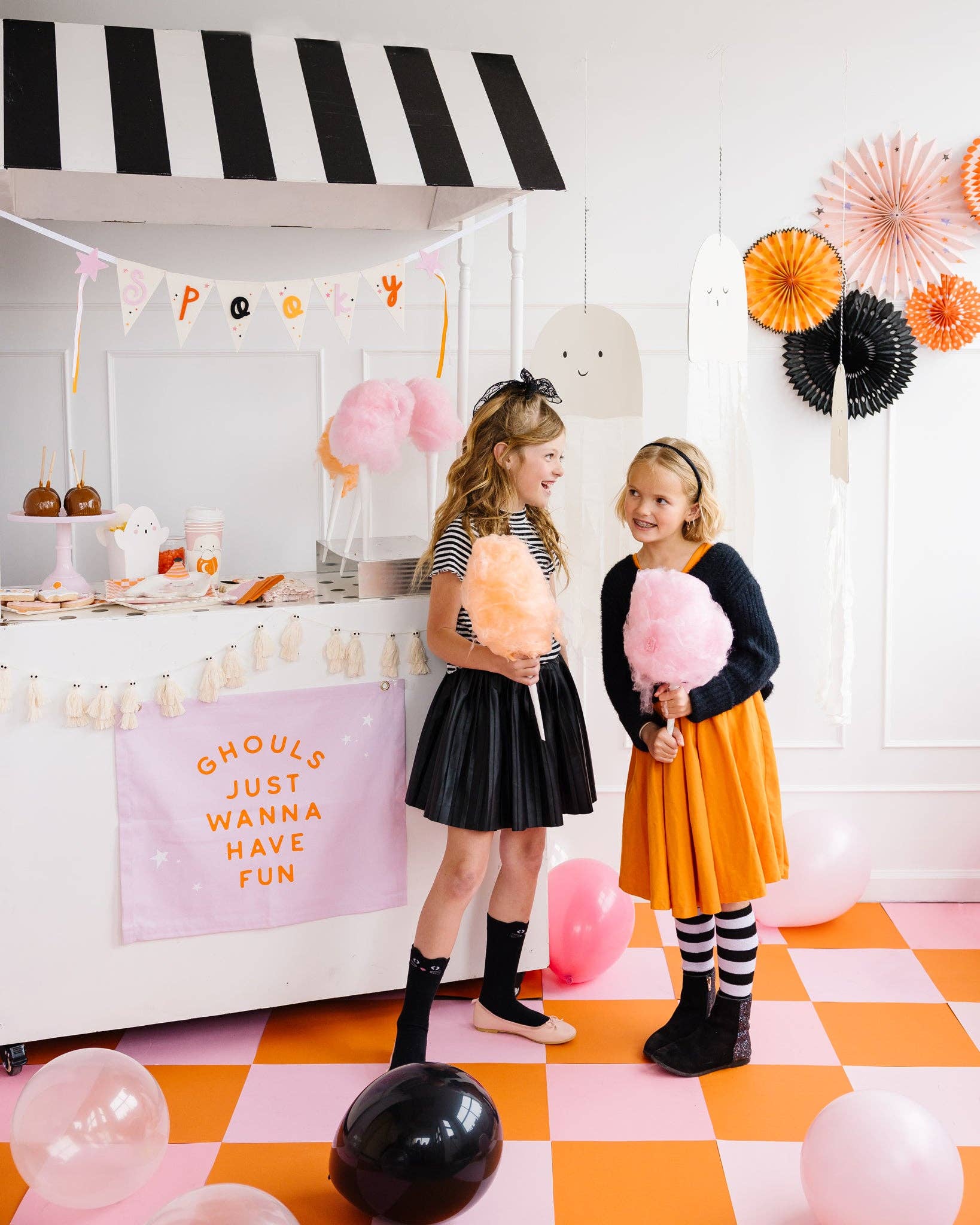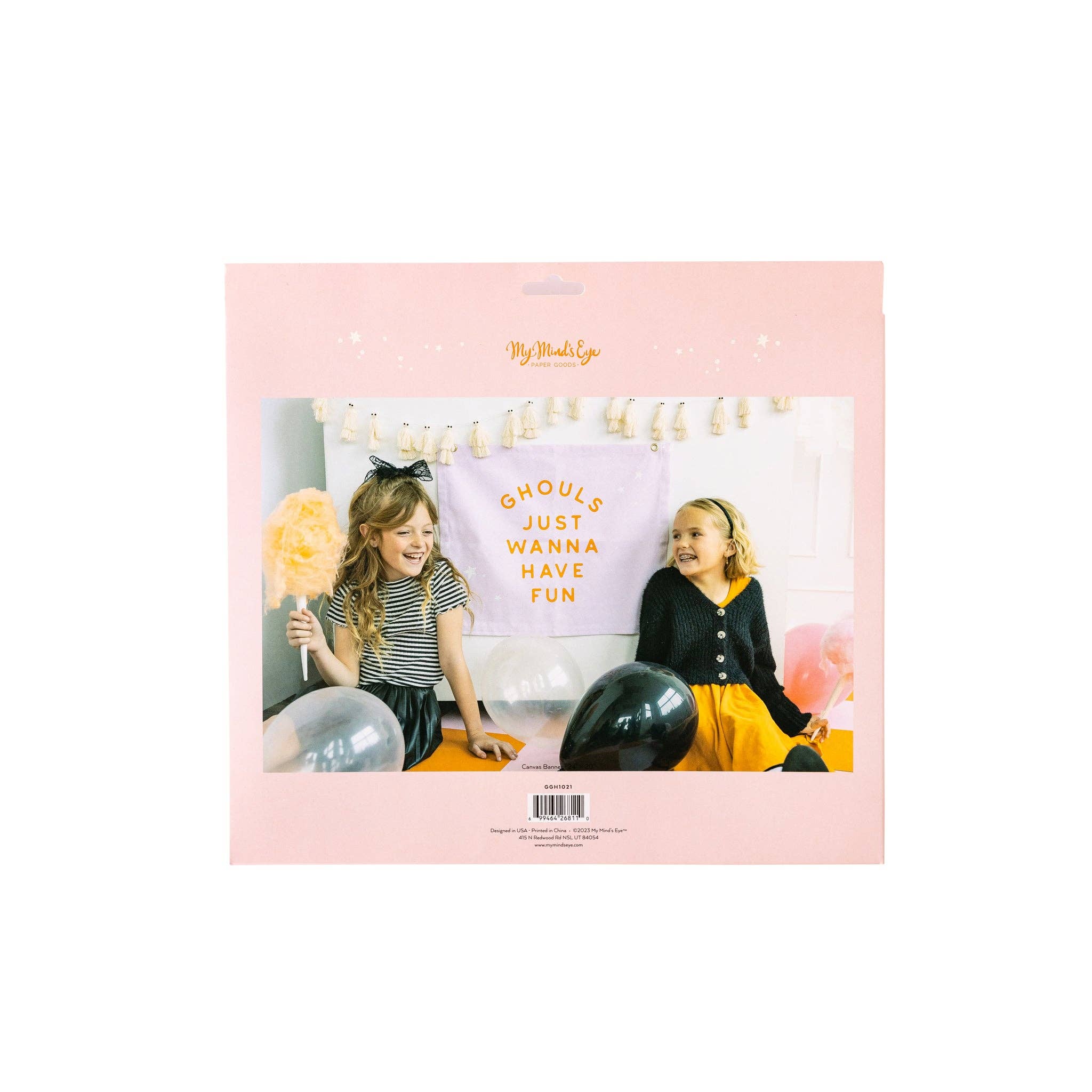 On Halloween ghouls just want to have fun, so make sure that your space is the funnest place of all with this canvas flag. Bright and colorful, this banner features the message "Ghouls just wanna have fun," and is the perfect decor to add some spooky whimsy to your Halloween this year!