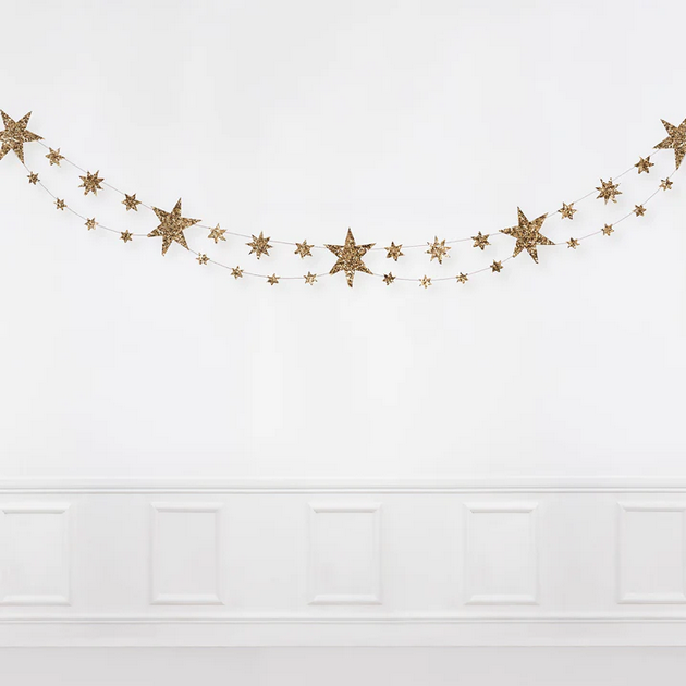 Stars make a sensational decoration, especially when they have a dusting of ECO platinum gold glitter. This gorgeous garland is perfect to add instant style to a festive party, or anytime of the year you want a touch of sparkle.