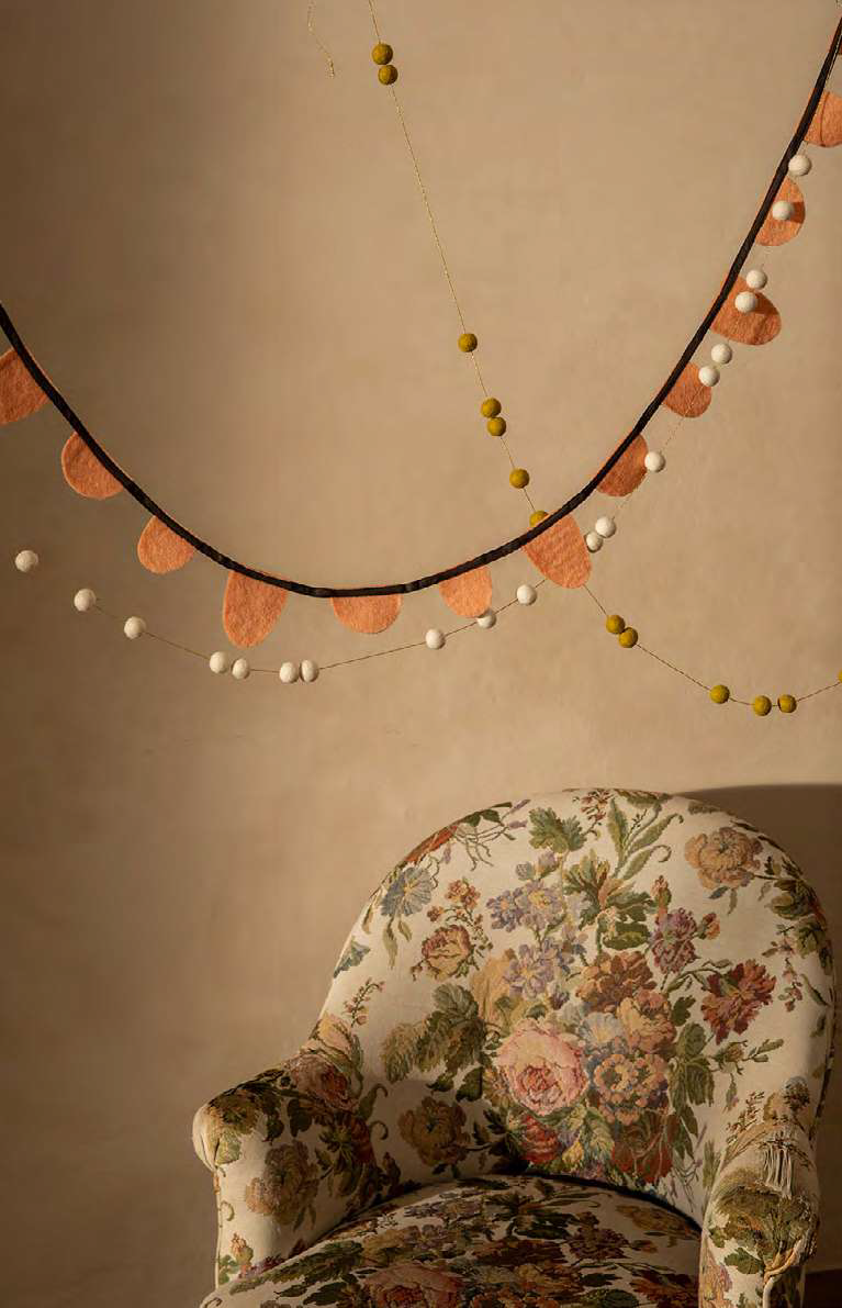 Inspired by the prayer flag garlands of the Himalayas, our garlands in felted wool will bring a soft and peaceful air to your space. Hang the garlands wherever you want balance and harmony: livingroom, bedroom, bathroom.