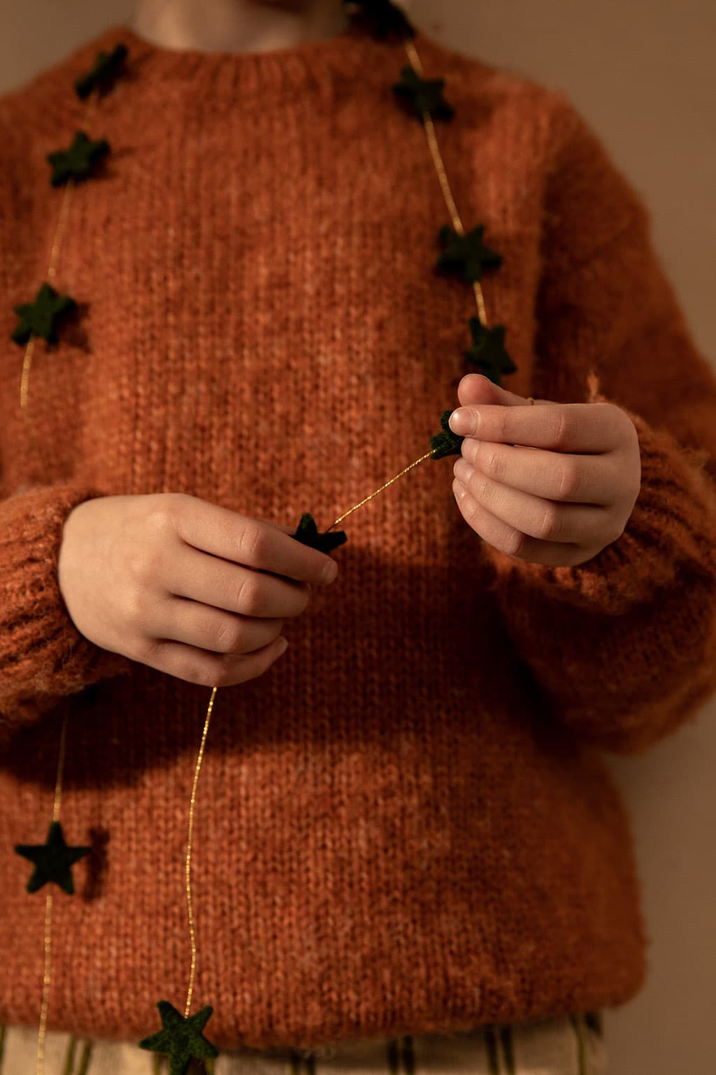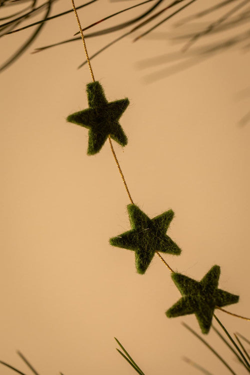 Here's a garland without pretension, oversimplified you might say! 20 little stars made from woollen felt which slide onto a 2-metre-long golden string, that you can move as you wish. A delicate decoration, playful and poetic, to hang wherever you like: in front of a window, on a wall or the ceiling of a canopy bed... To breathe a little magic into everyday life or for the holidays.