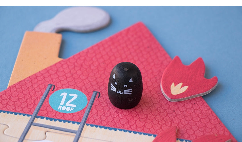 A beautifully illustrated cooperative game where up to 6 kids can play together to help the firemen to put out the fire in order to save the kitten that has been trapped on the roof.