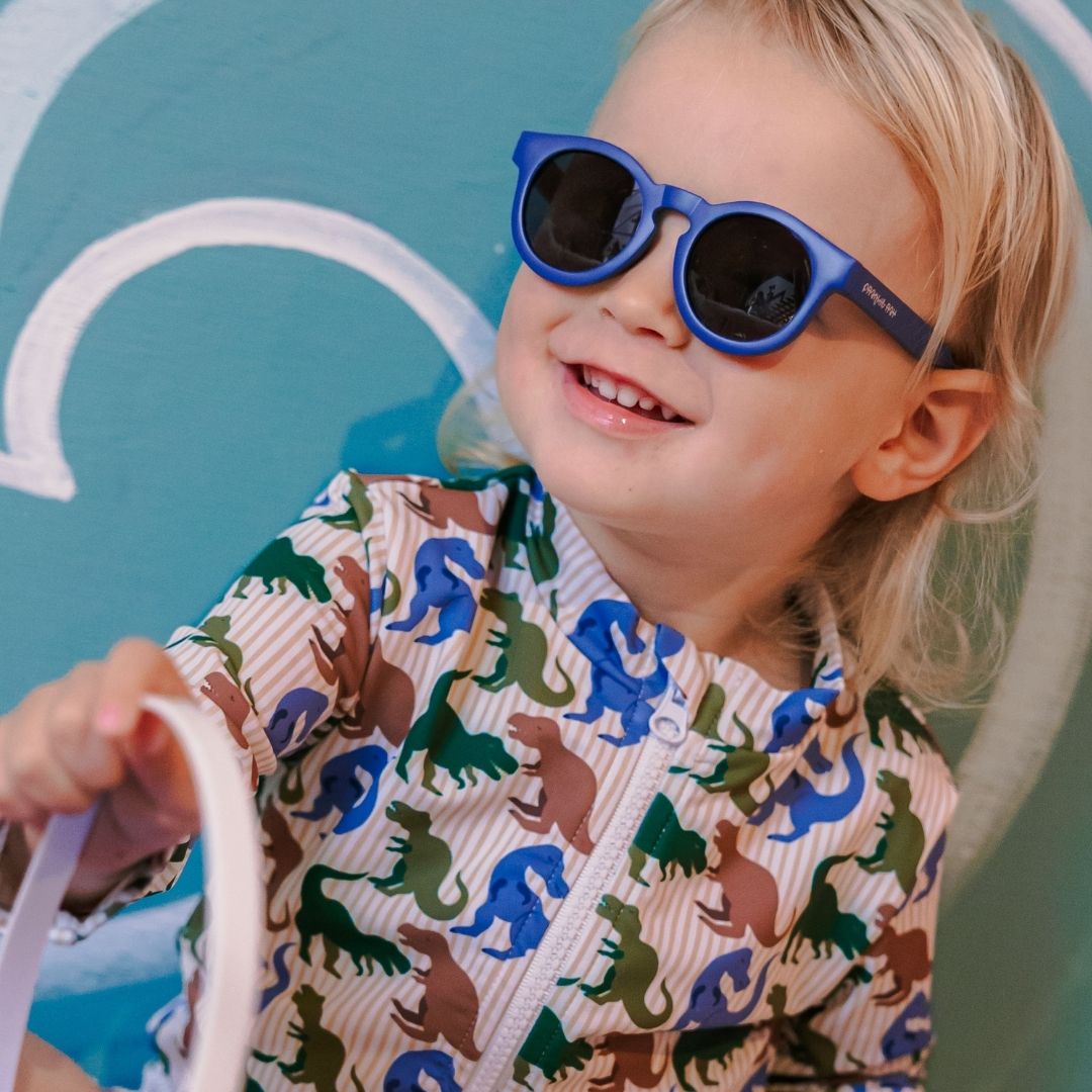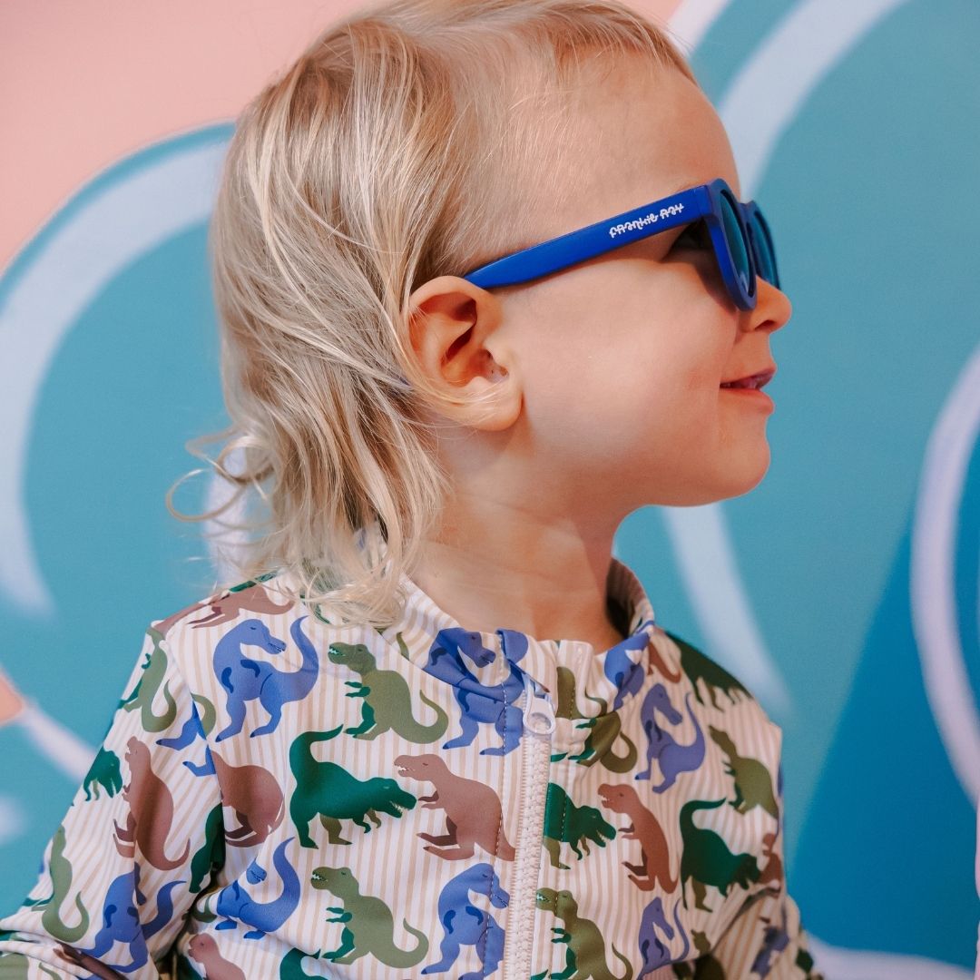 The Frankie Ray Pixie in Matte Dark Blue is a classic round sunglasses style designed for babies and toddlers aged 0–2 years. Featuring a flexible soft rubber frame, Pixie is lightweight, comfortable, and designed to sit securely on little faces for everyday wear.