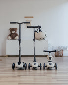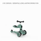 Iconic 2-in-1 ride-on to scooter with adjustable handlebar.