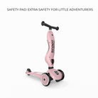 The innovative safety pad of the Highwaykick 1 is attached to the front of the footboard and can be pulled out to the front if required. It serves as a practical anti-tip device to minimise unintentional tipping forwards. This keeps your child safe on the road at all times - no matter where the journey takes them!
