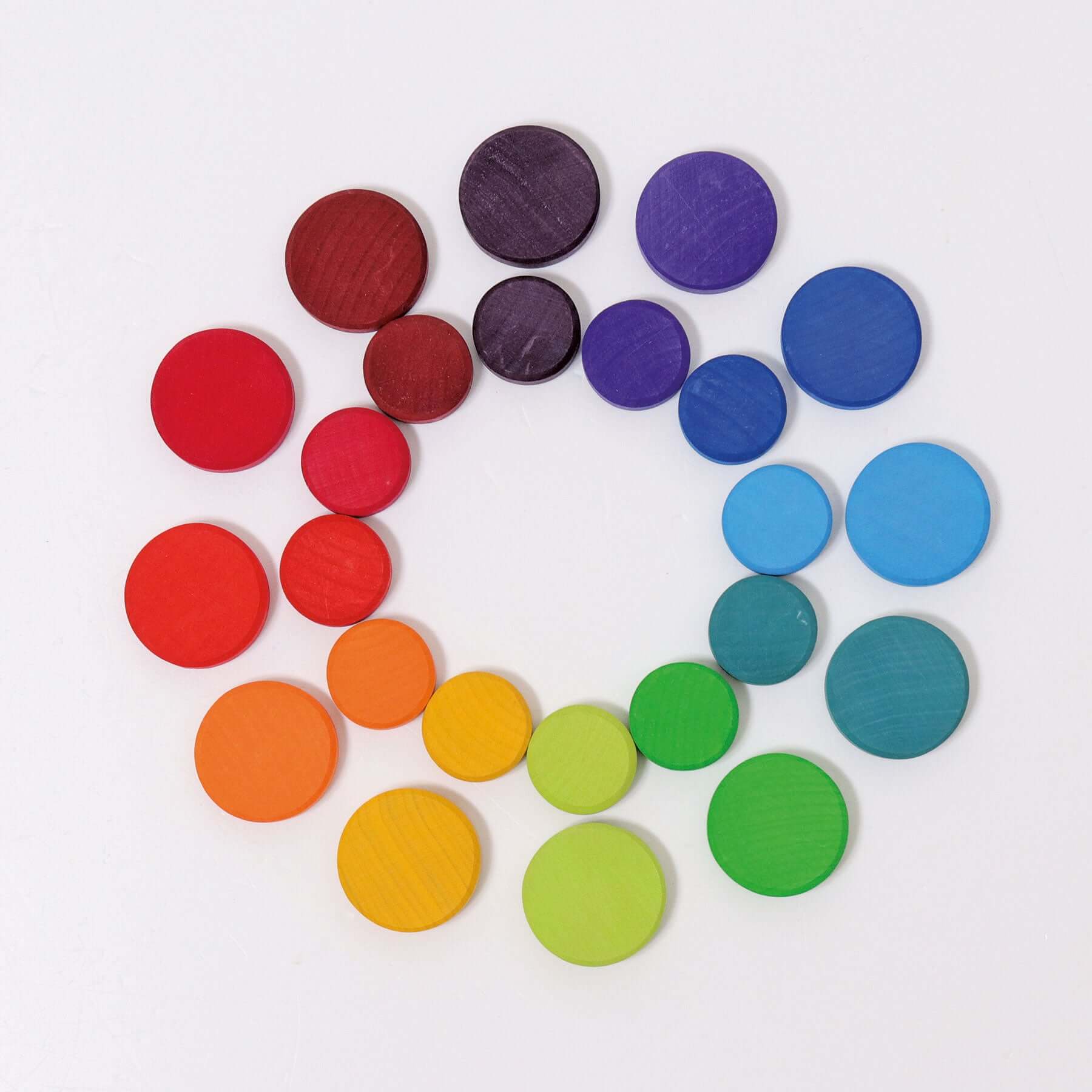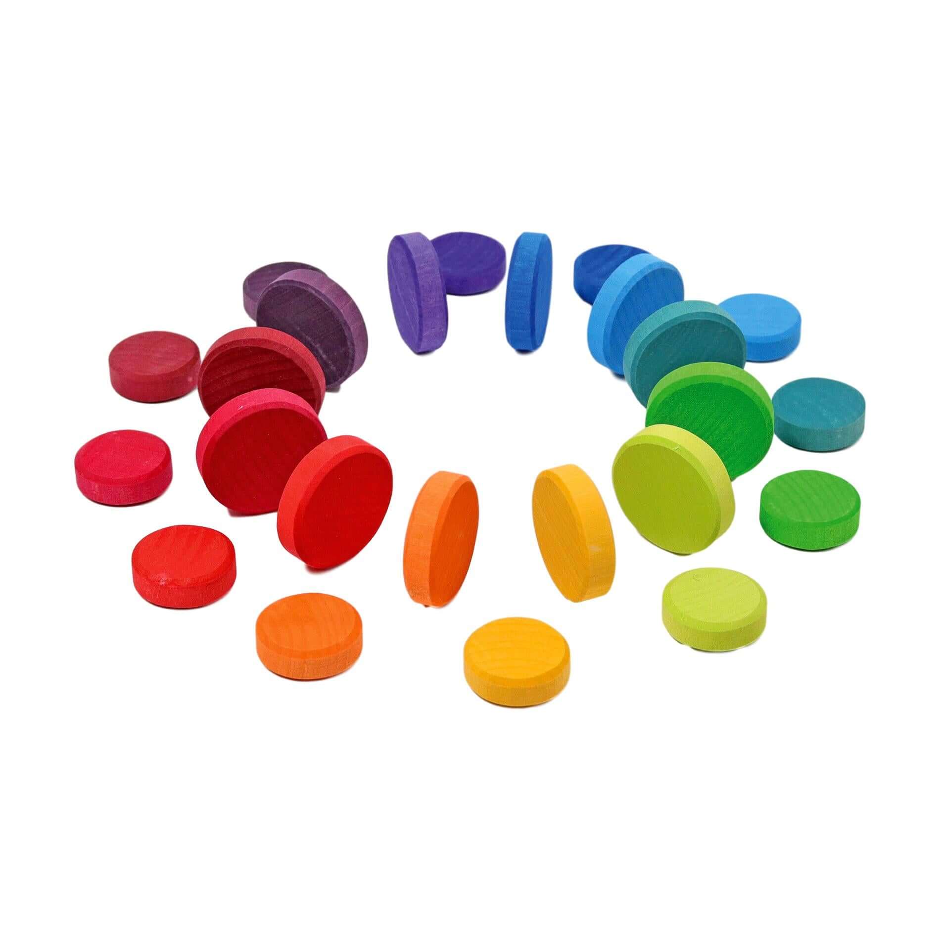 Wonderfully tactile and versatile construction pieces. Increase construction options with the help of the wooden coins, by combining with the large and small stacking rolls (10173, 10575).