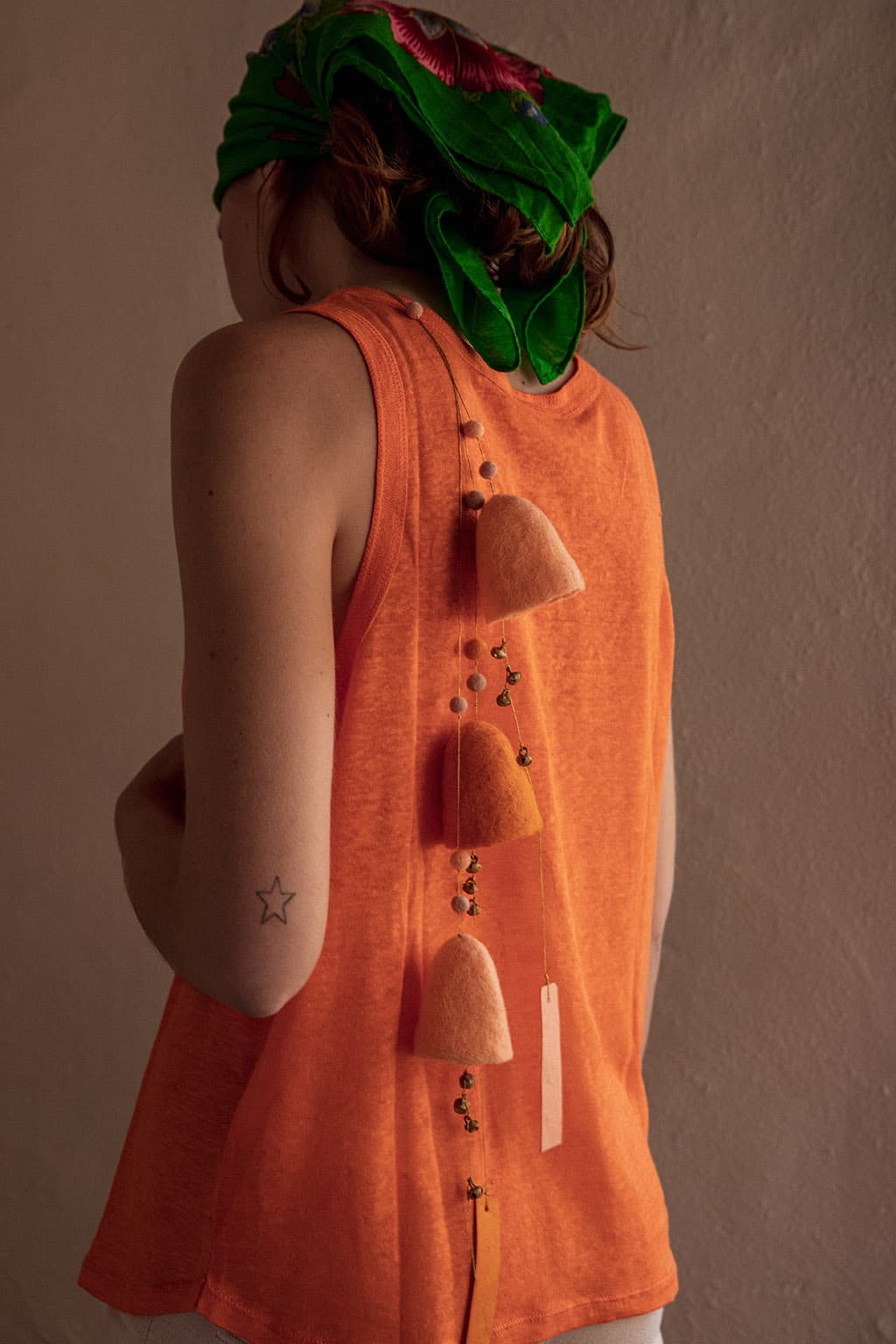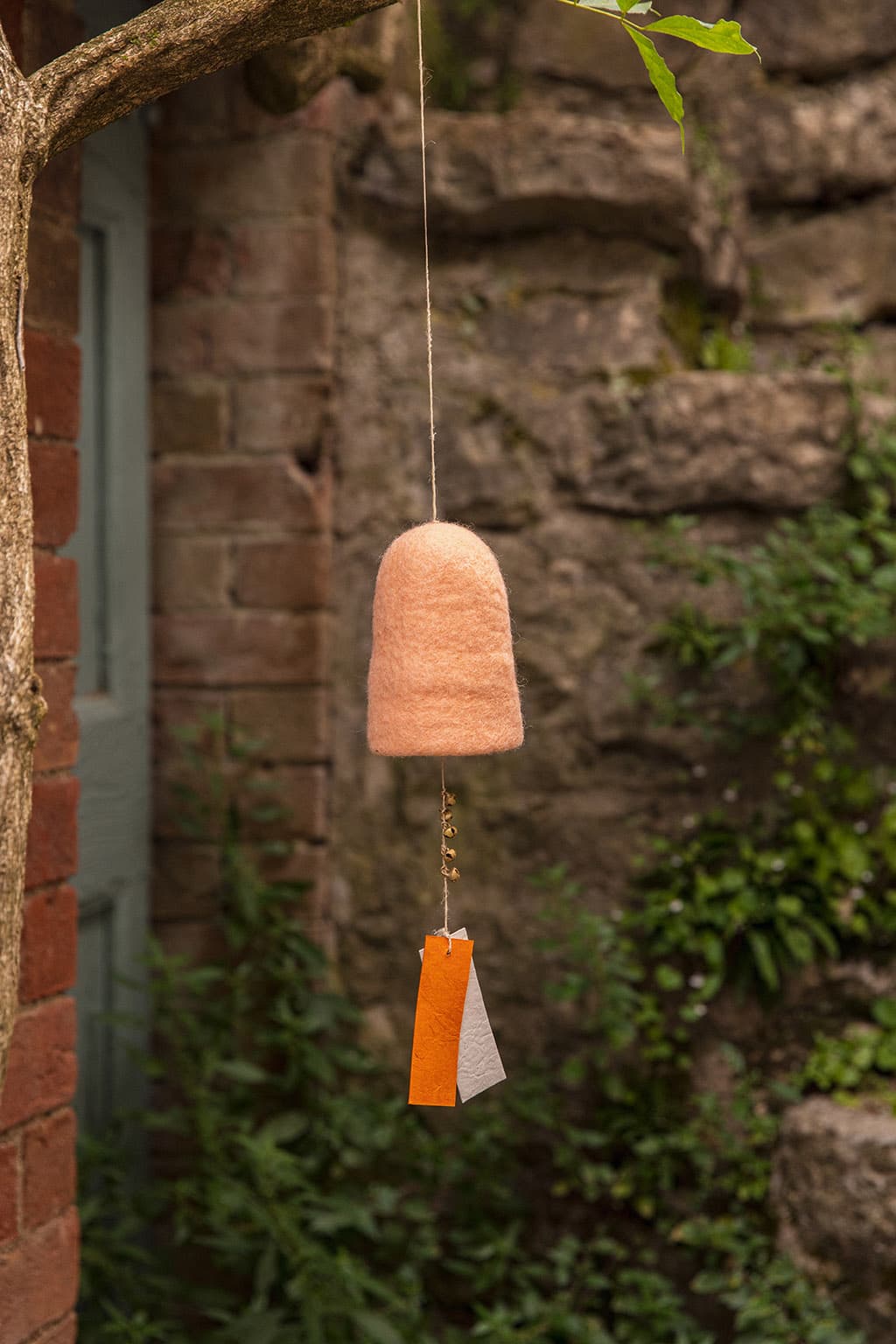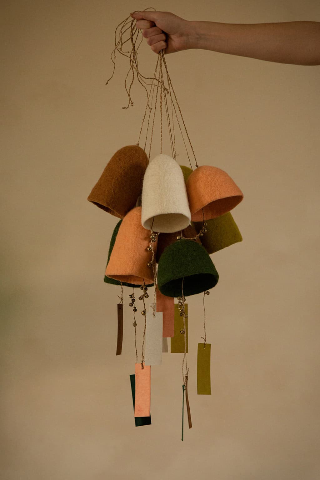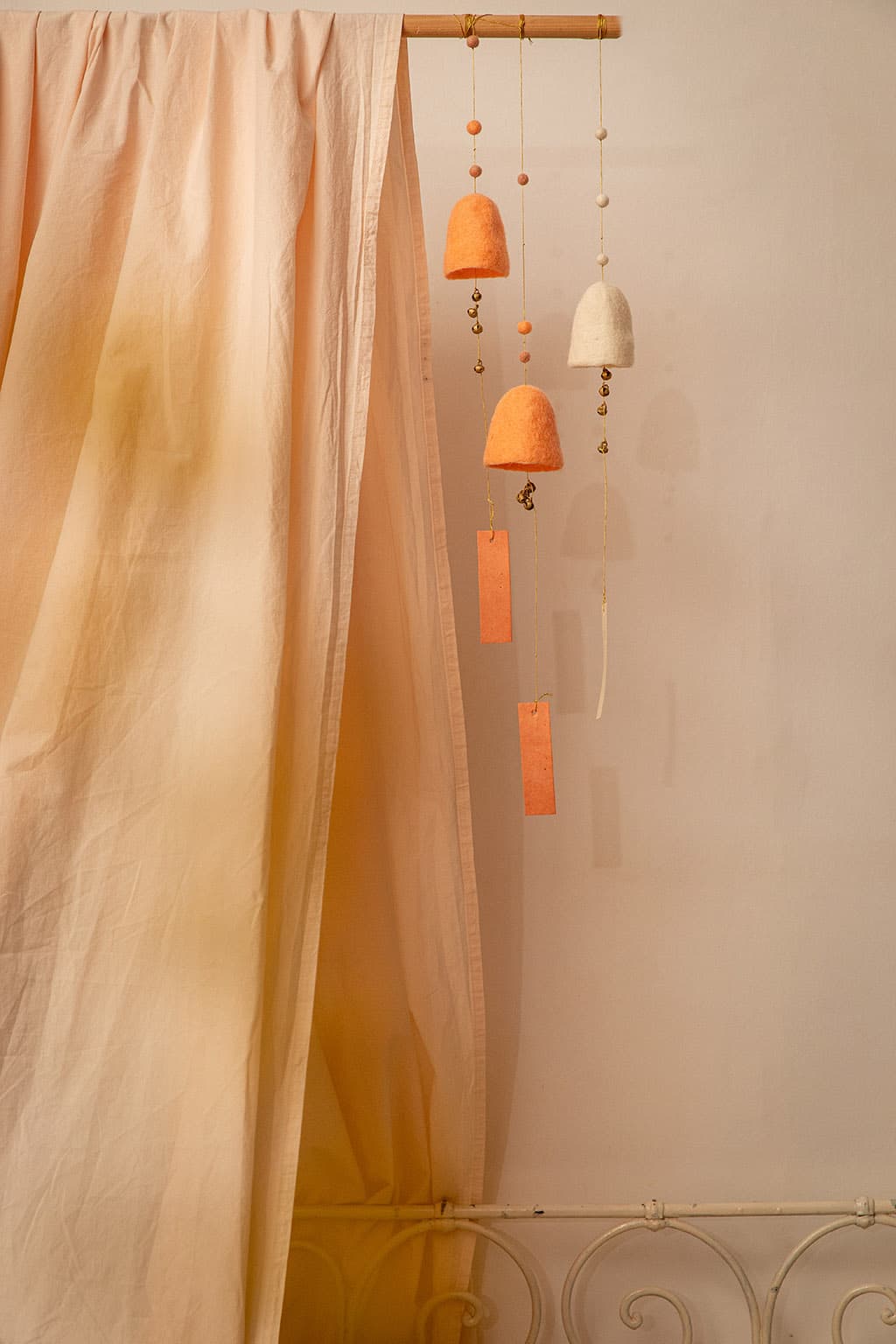 Inspired by the bells of Nepalese temples, MUSKHANE has created its WIND BELL by combining felt, brass bells and Nepalese paper. Entirely handmade in our workshops, this pairing of materials creates a decorative and poetic accessory that will radiate throughout the room you hang it in!