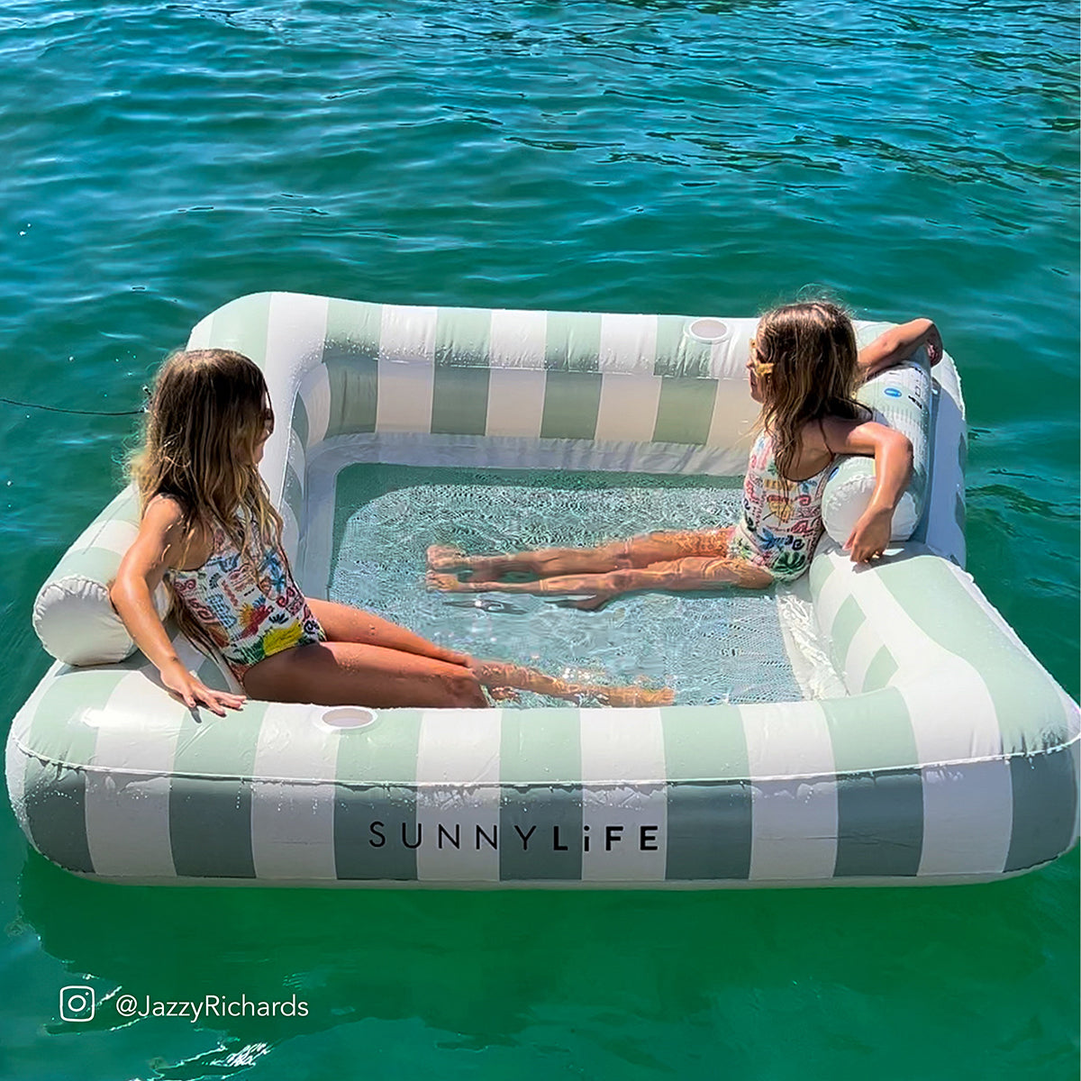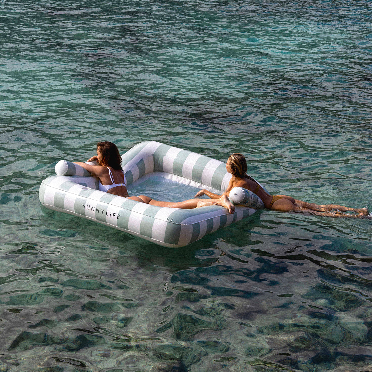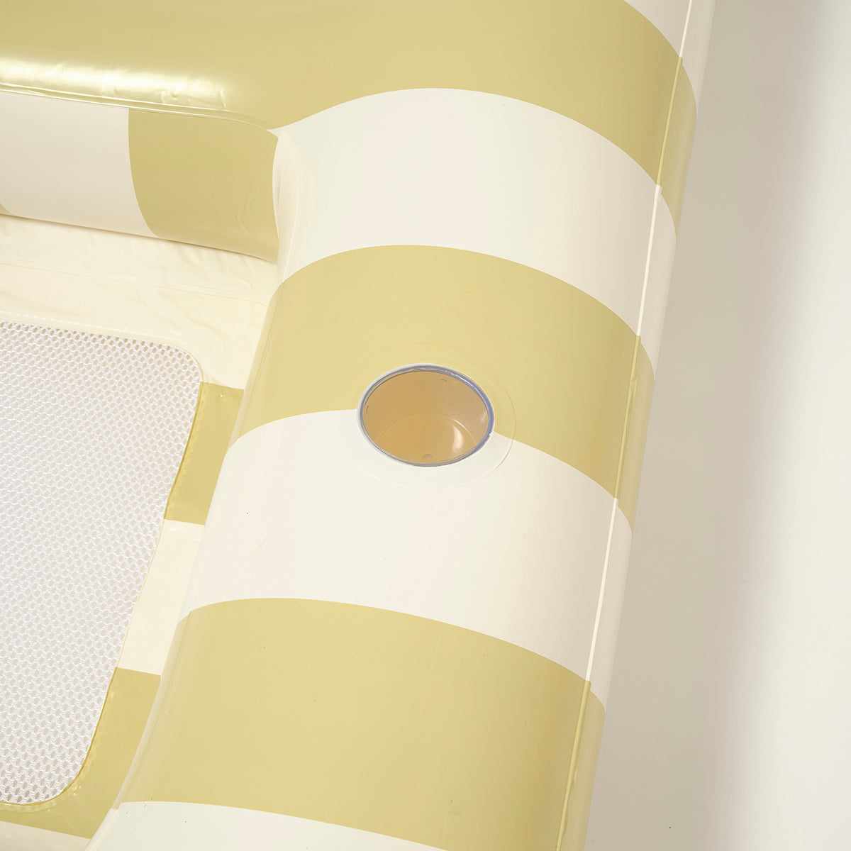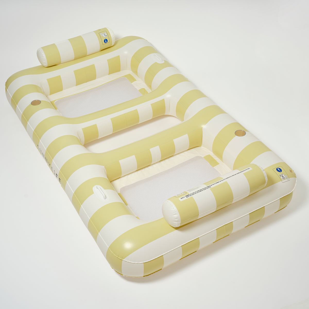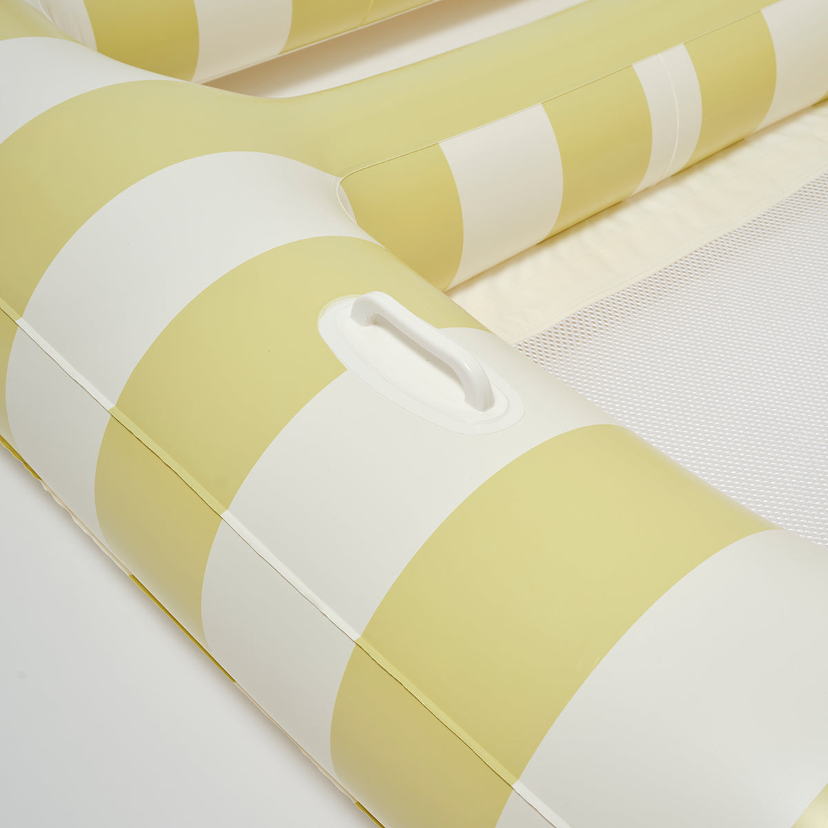 Experience the best of summer where luxury meets leisure. The Vacay Luxe Twin Hammock Float is stylish, oversized, and the CEO of relaxation, perfect for floating in the pool and long balmy days spent by the seaside. Designed to be enjoyed by two, featuring a mesh interior and an inflatable tube exterior so you can be partially dipped in the water. Take delight in the simple pleasures and have twice the fun with its warm olive and cream maxi stripe print that will have you and your bestie drifting into a daydream.