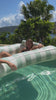 Salt and chlorine can have a detrimental effect on most materials, so we recommend that you give your float a rinse off in fresh water after use and put out to air dry. No soap needed, just keep it simple and it’ll stay looking brand-new for much longer.