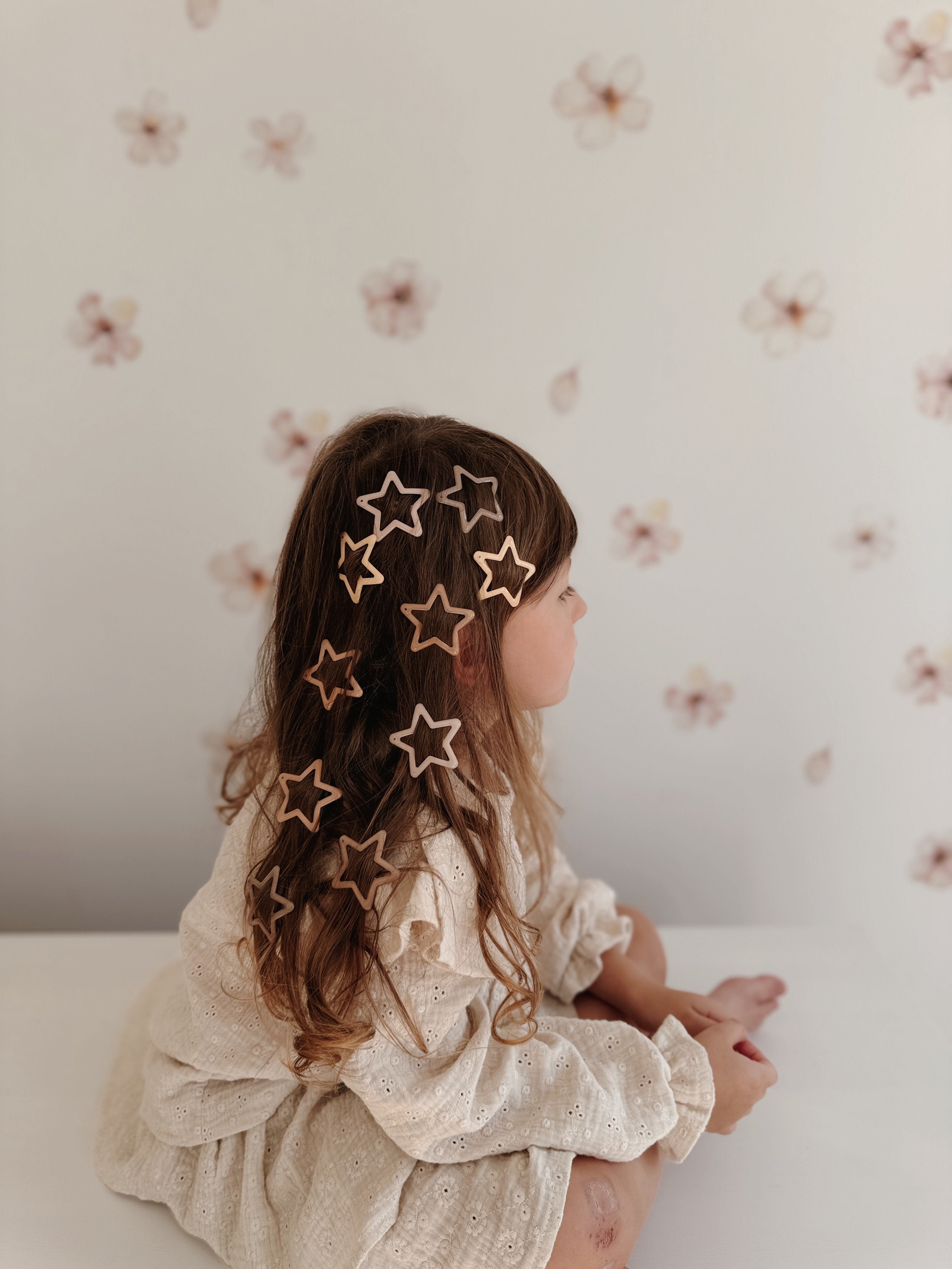 Add a touch of magic to your hairstyle! This charming collection of 10 glitter star-shaped hair clips is perfect for creating dreamy, whimsical looks. Whether you're dressing up for a special occasion or just want to sparkle a little brighter every day, these clips are your go-to accessory.