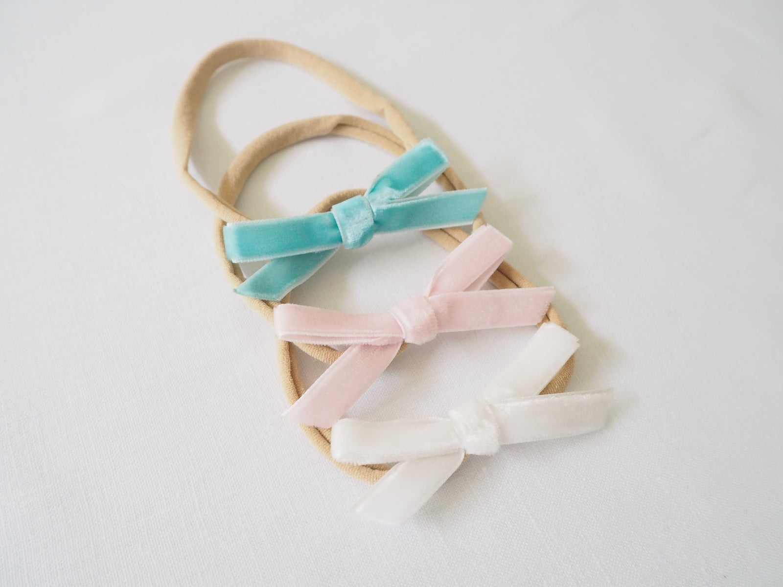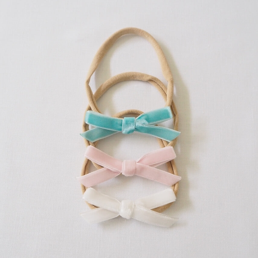 Velvet Mini Bow Set - Turquoise, Lullaby Pink + White