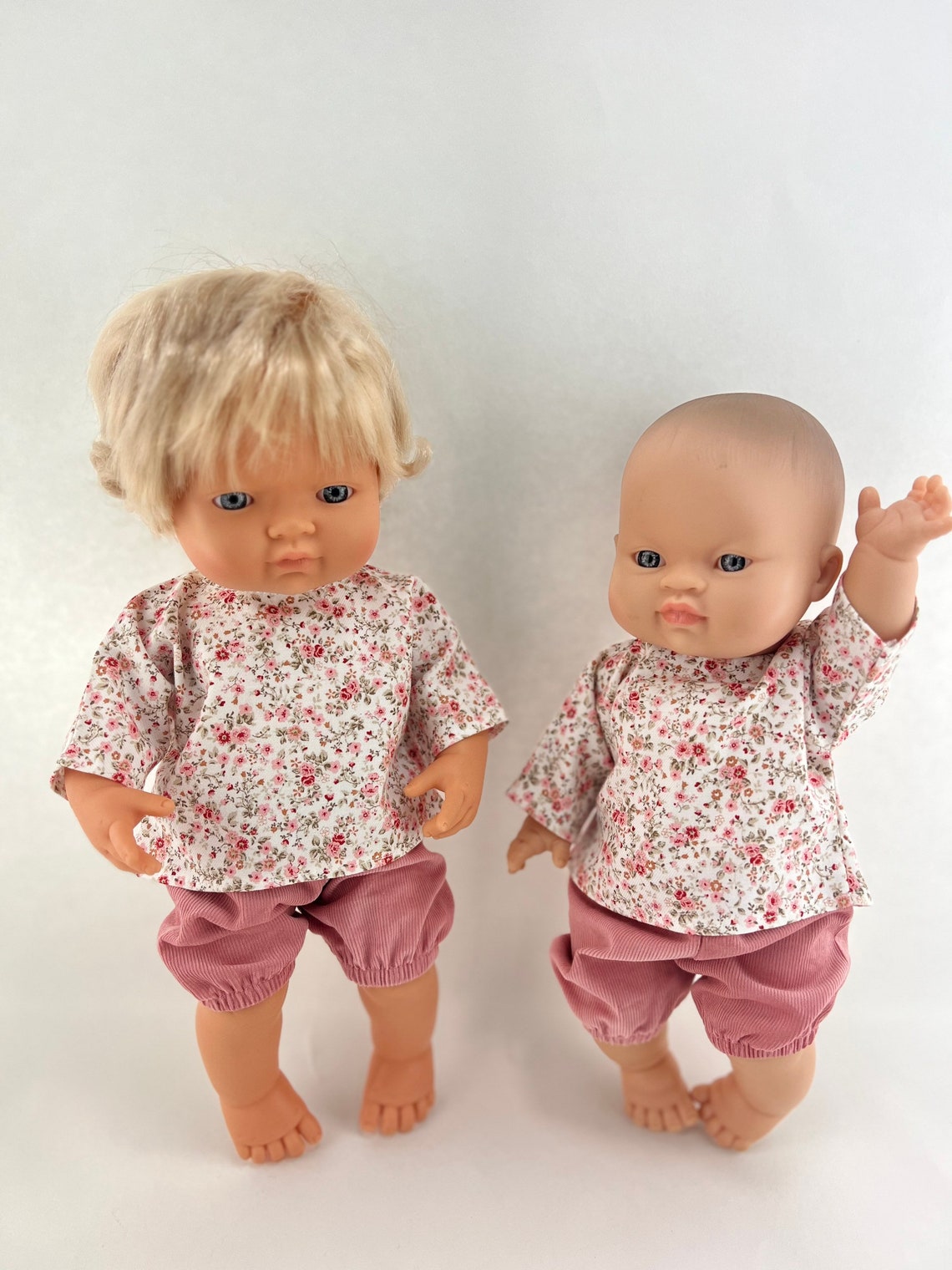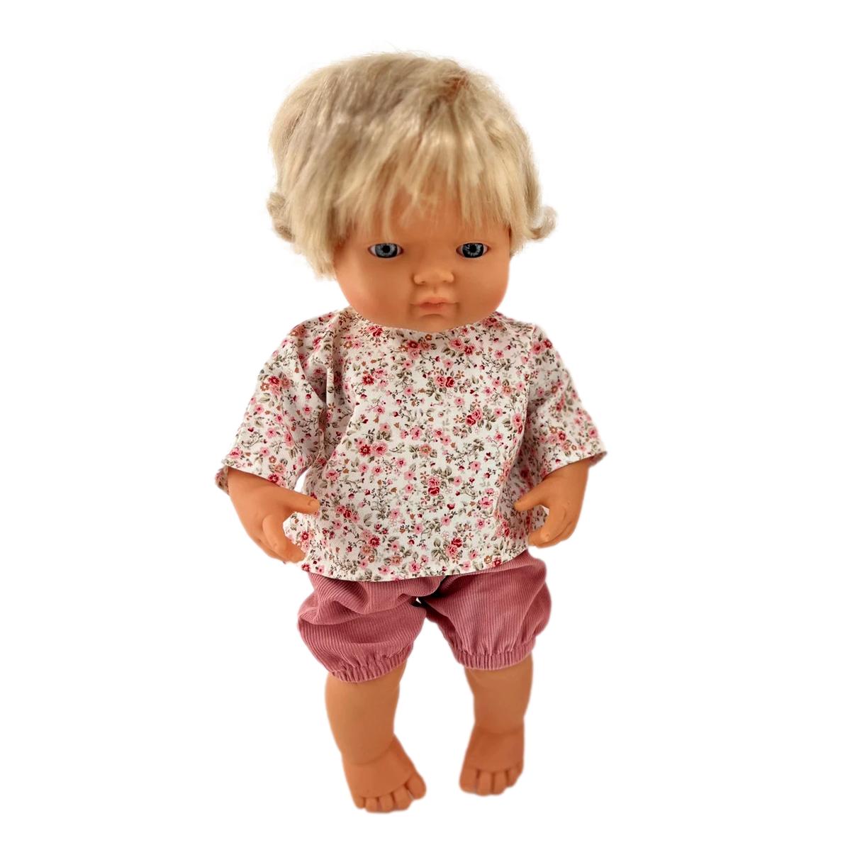 Miniland Doll Clothing 38cm | Blouse + Bloomer Set | Pink Cord