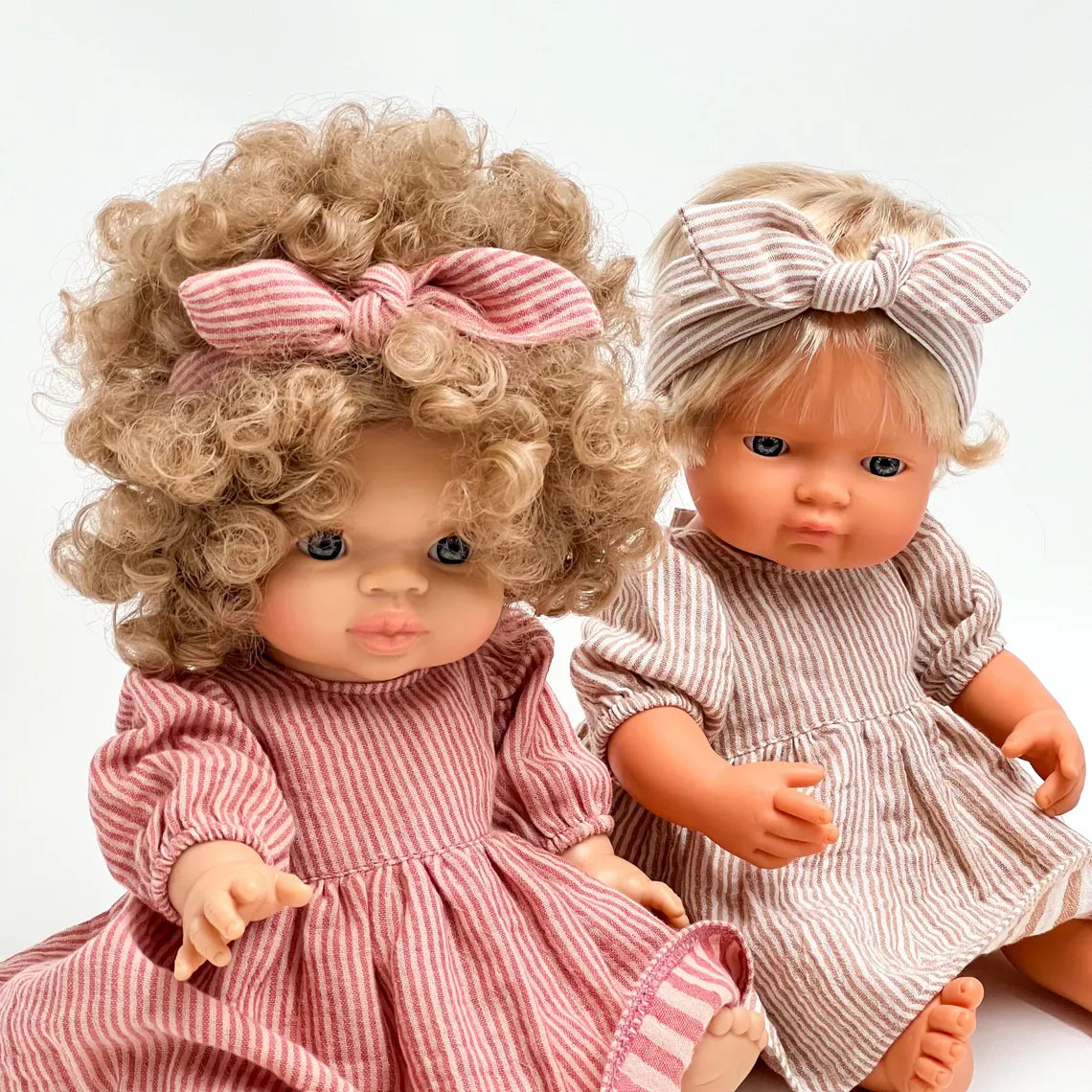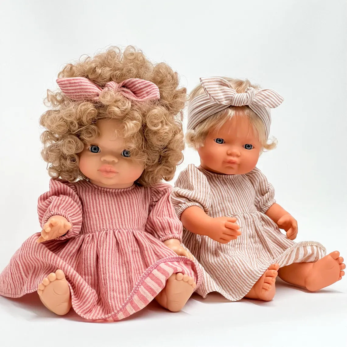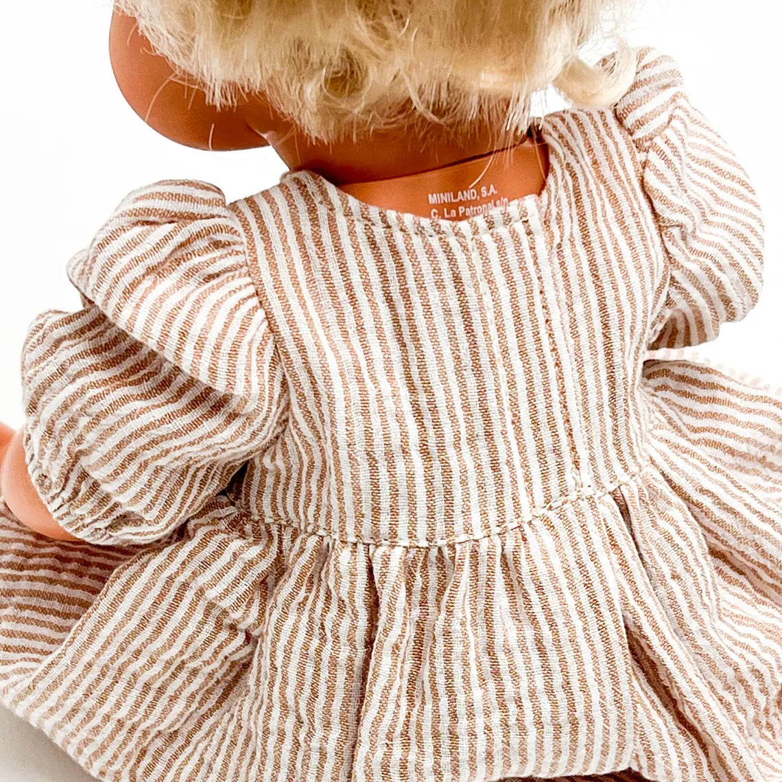 Miniland Doll Clothing 38cm | Dress + Headband | Beige Stripe