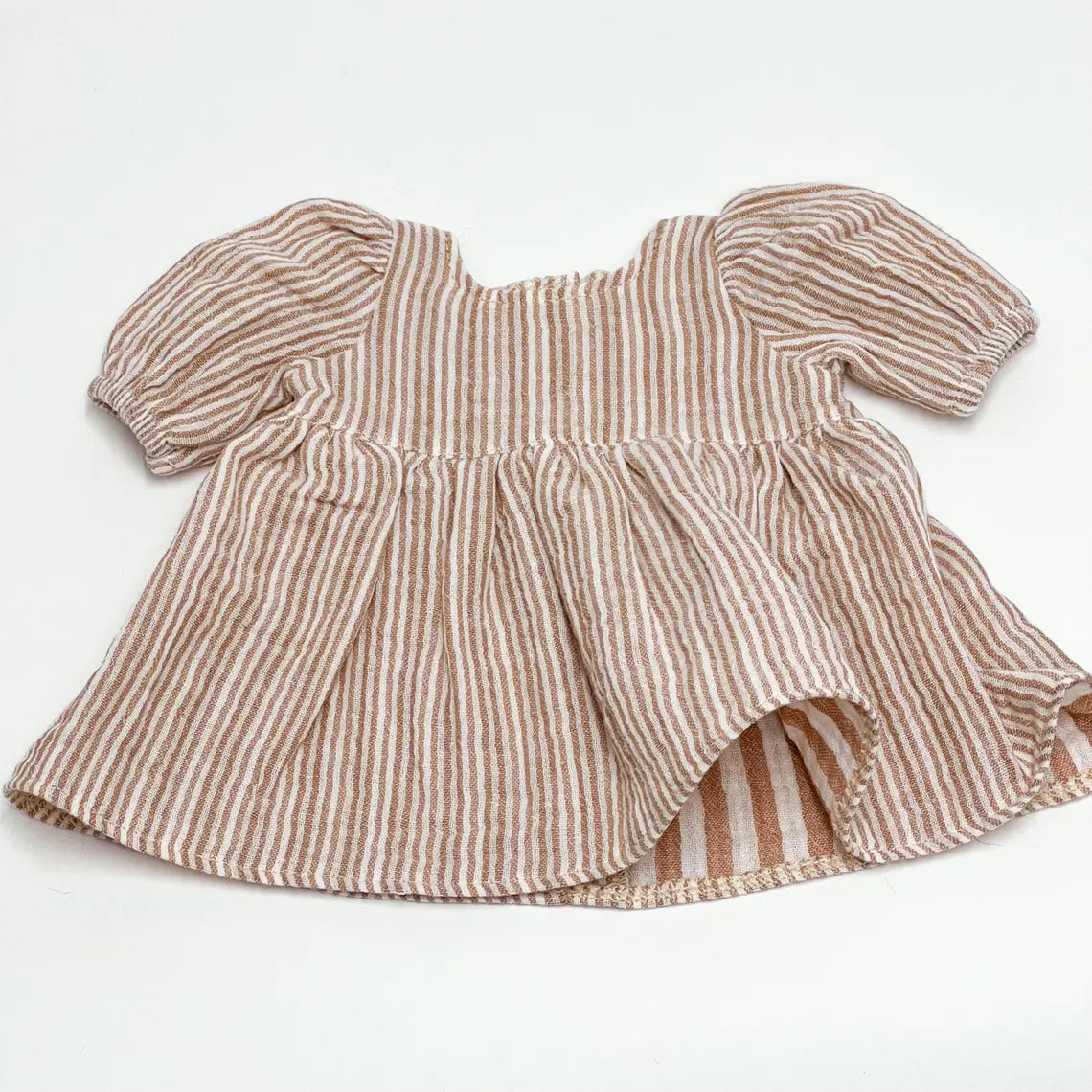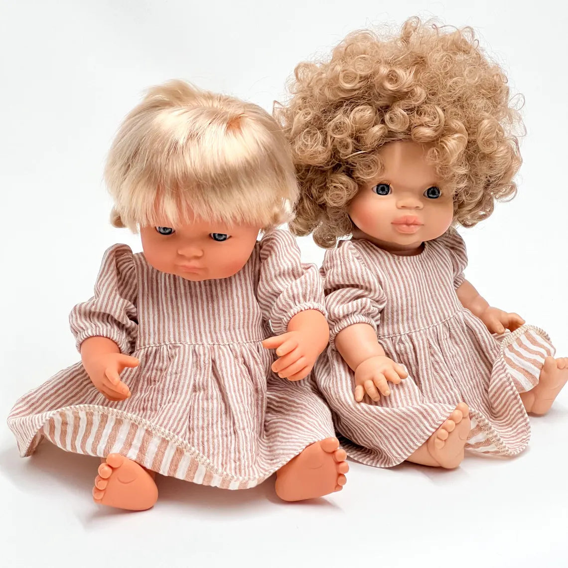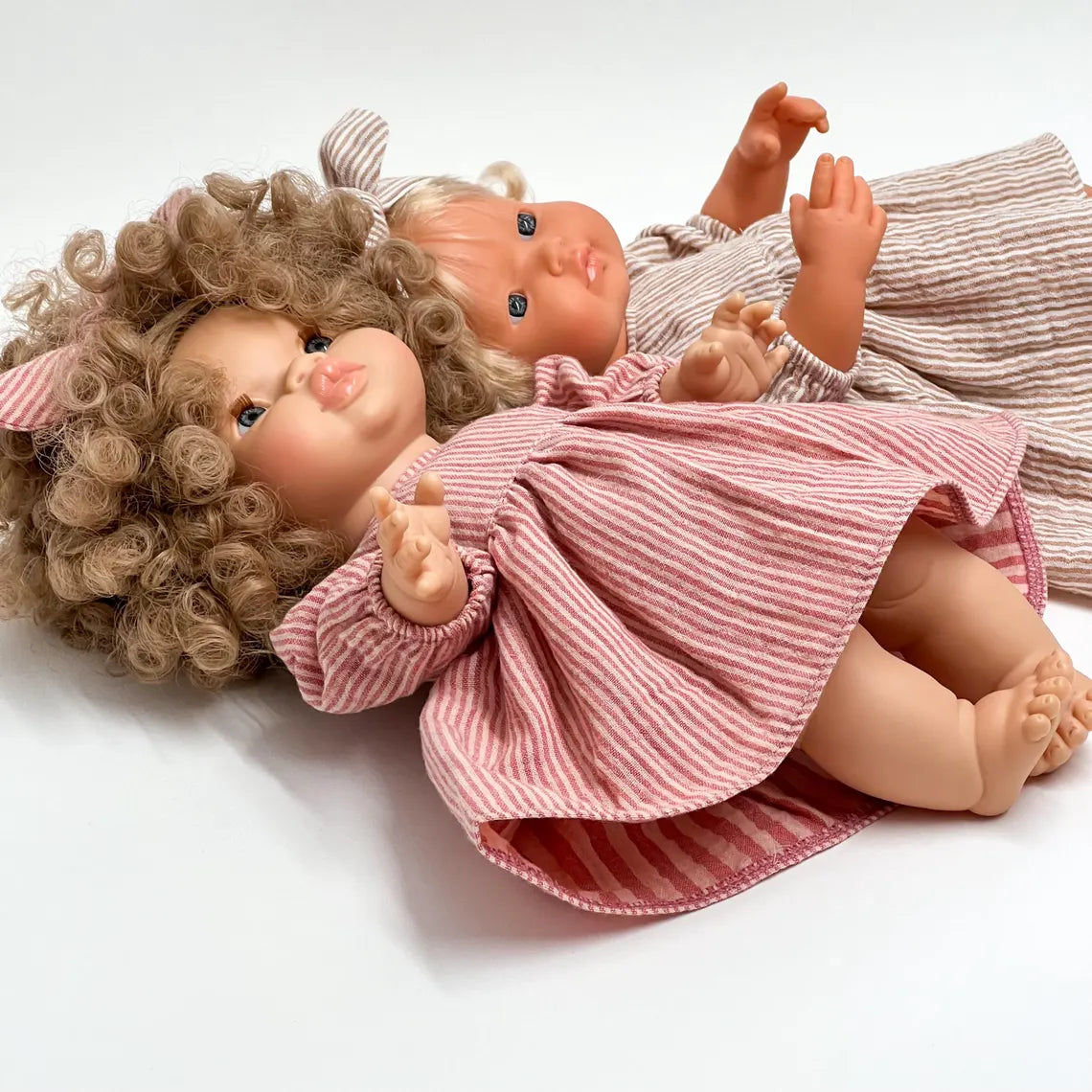 Miniland Doll Clothing 38cm | Dress + Headband | Beige Stripe