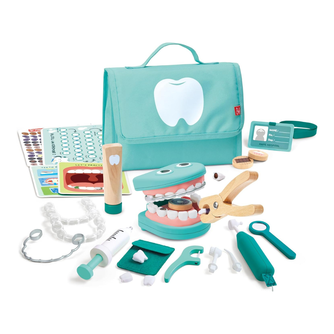 Educational and entertaining, this set helps children learn about dental health in a playful and interactive way. With 8 removable teeth and a range of dental tools, children can practice dental care techniques, which enhances their understanding of oral hygiene and develops essential motor skills and role-playing abilities.