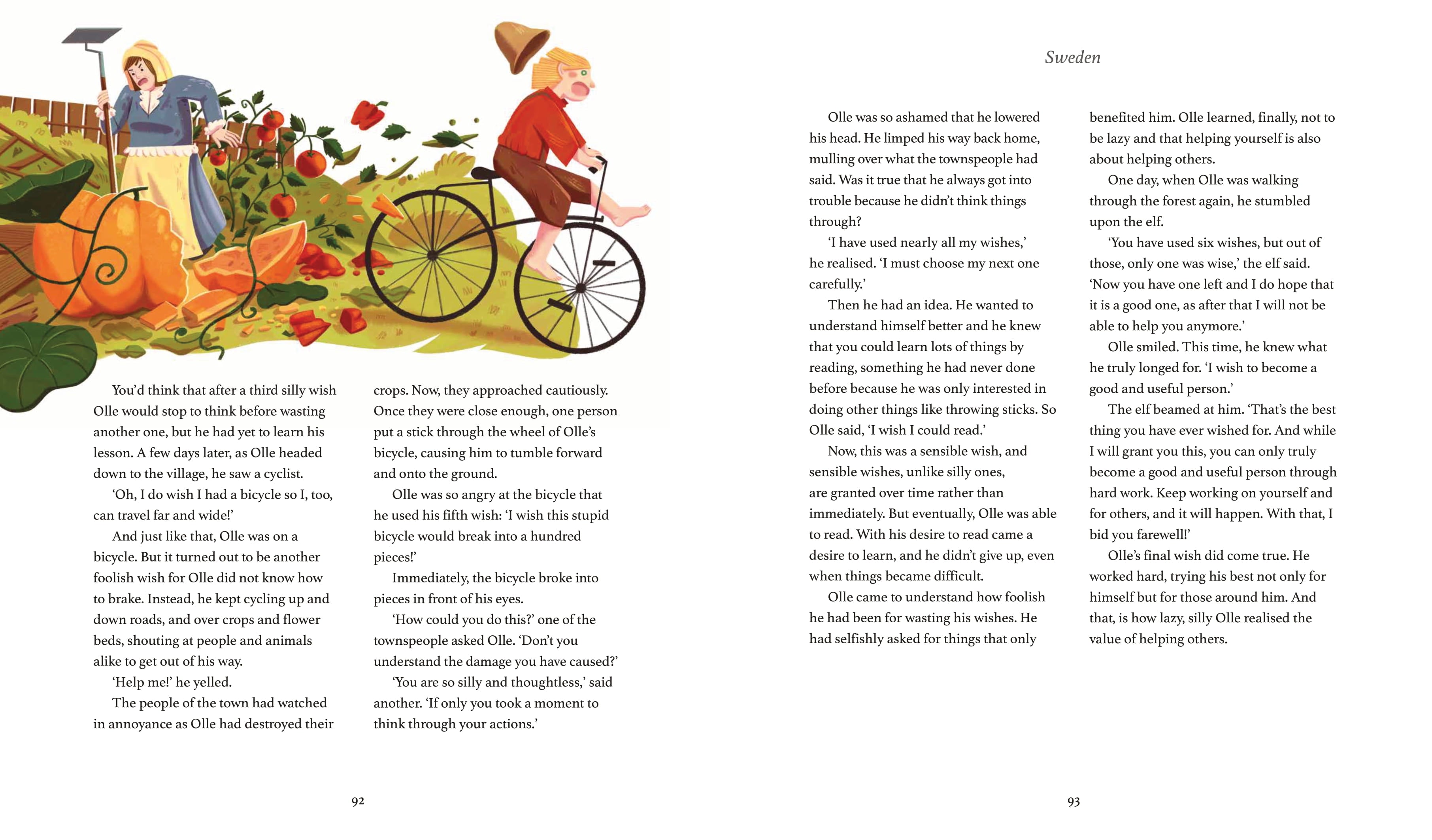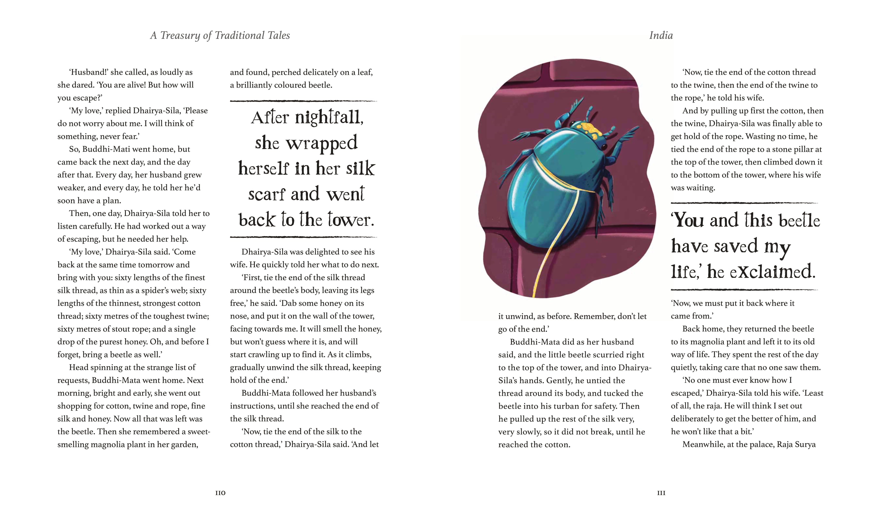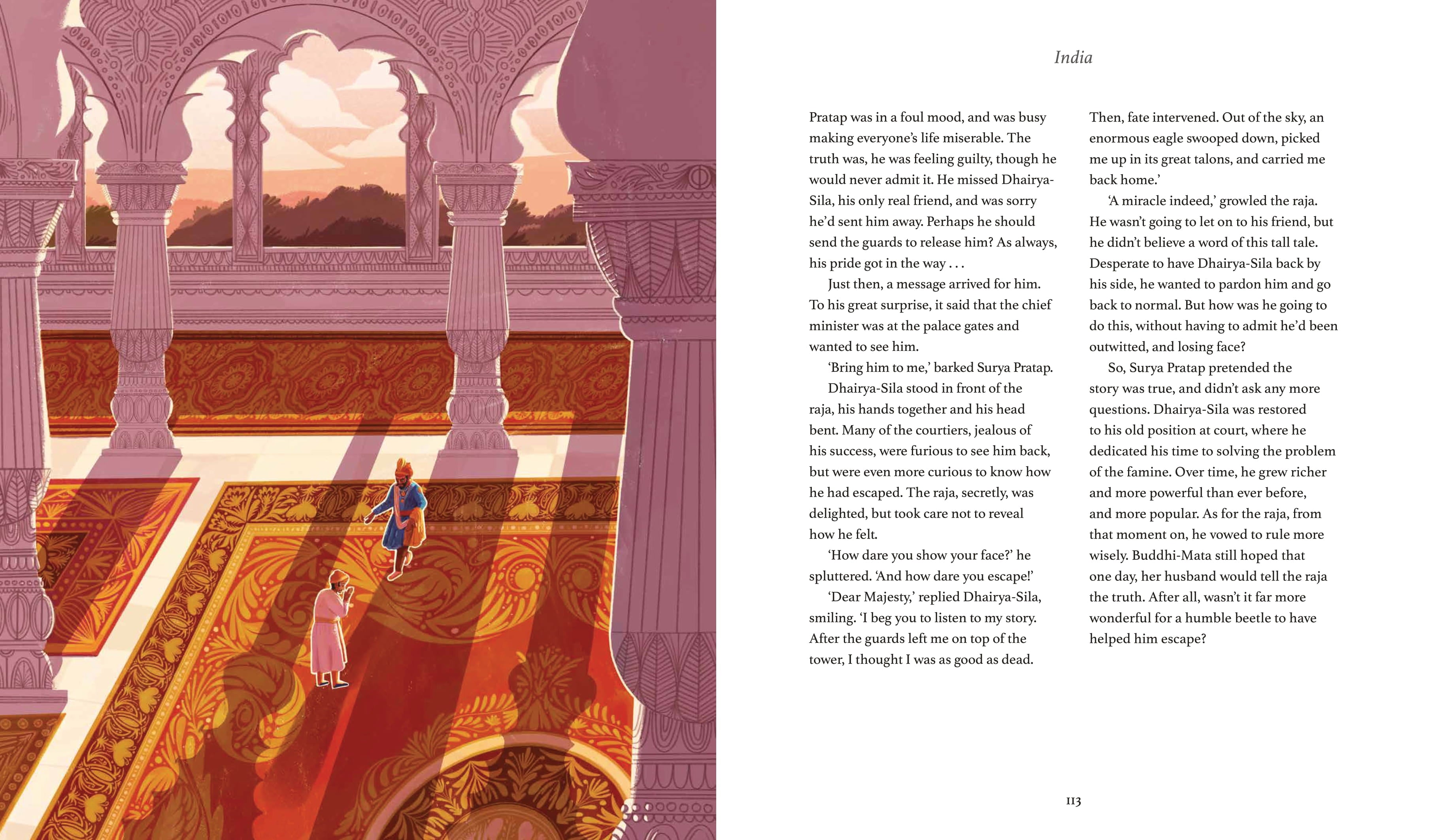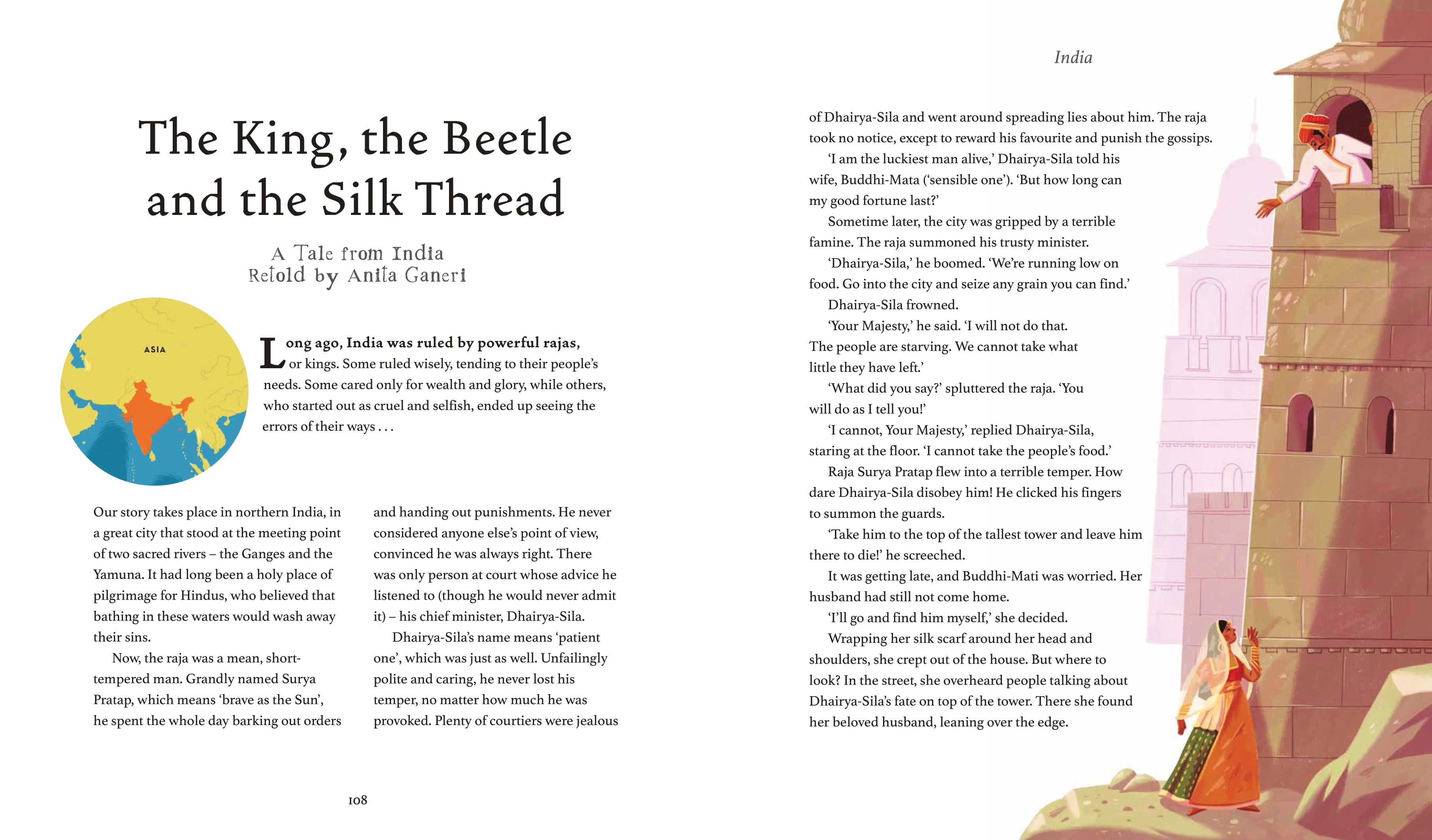 Stories include: The Seven Wishes (Sweden); The Spider and the Turtle (Nigeria); The King, the Beetle and the Silk Thread (India); The Bear Princess (England); The Merchant and his Parrot (Persia); The Rainbow Serpent (Aboriginal Australian)