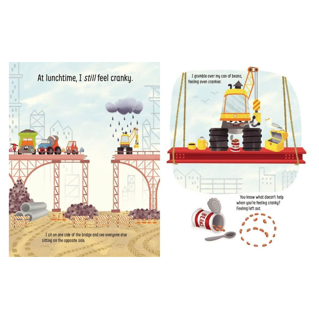 It's the last day at the construction site and Cranky the crane truck is feeling, well, cranky. And he doesn't want to talk about it. His friends Zippy, Wheezy, and Dump Chuck try to cheer him up. But you know what doesn't help when you're feeling cranky A lot of talking.