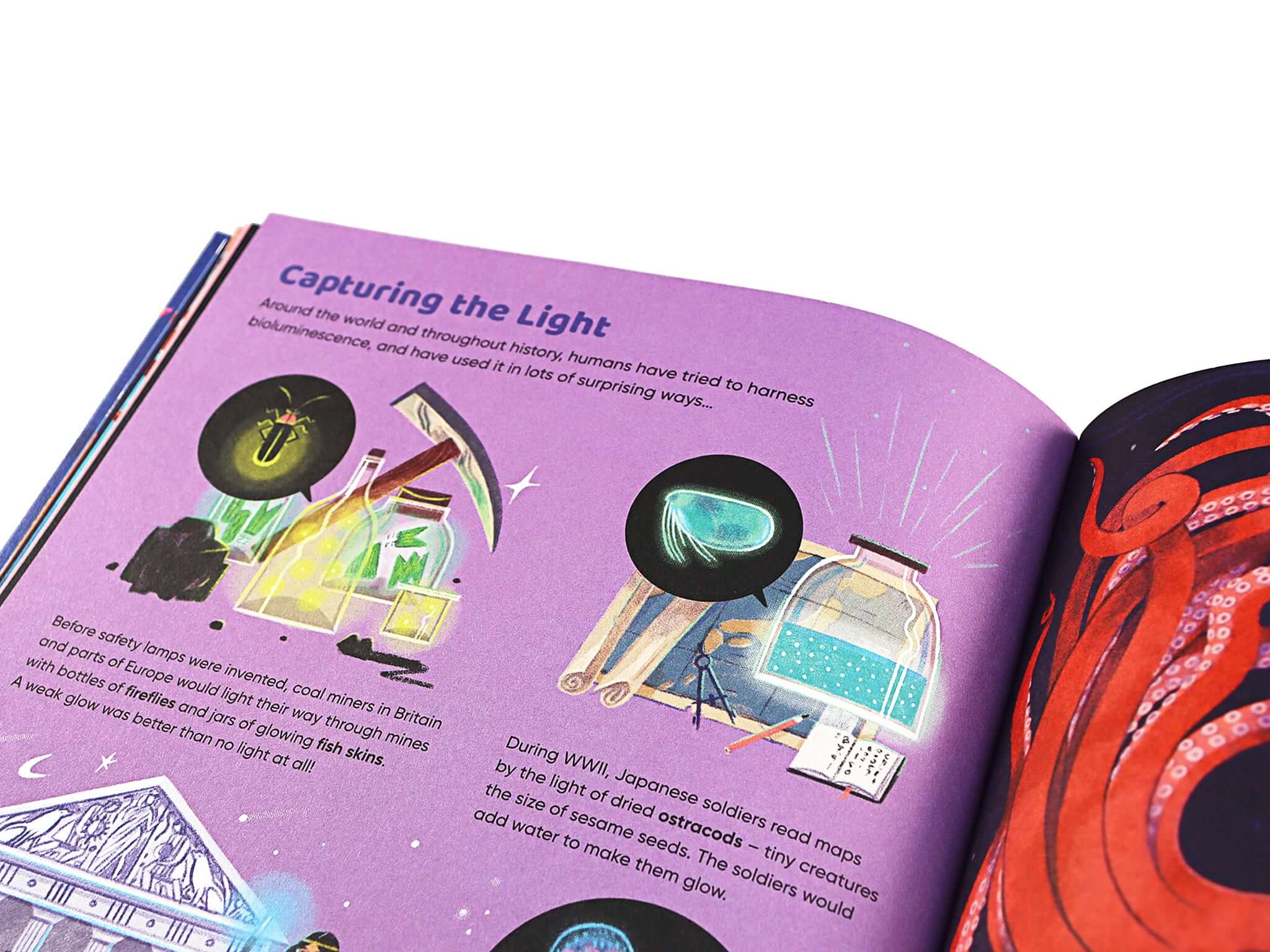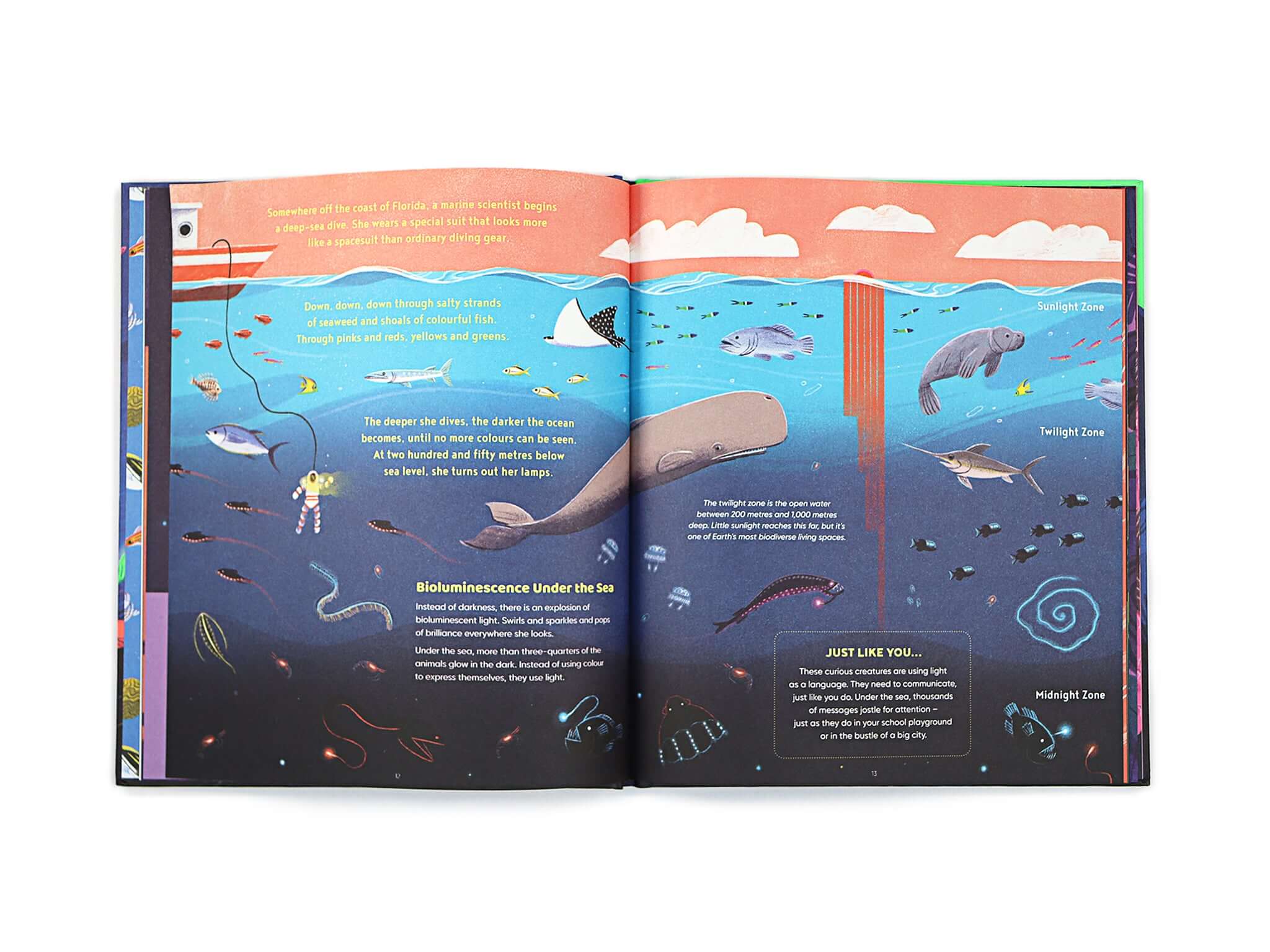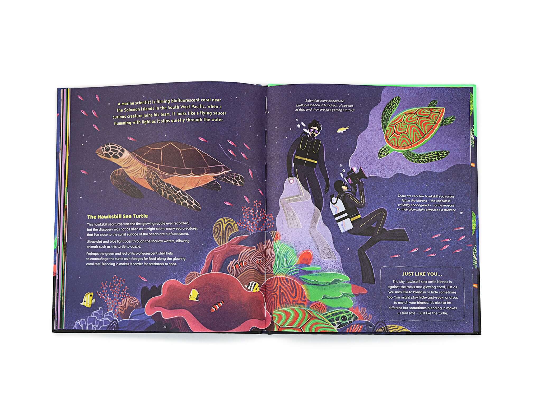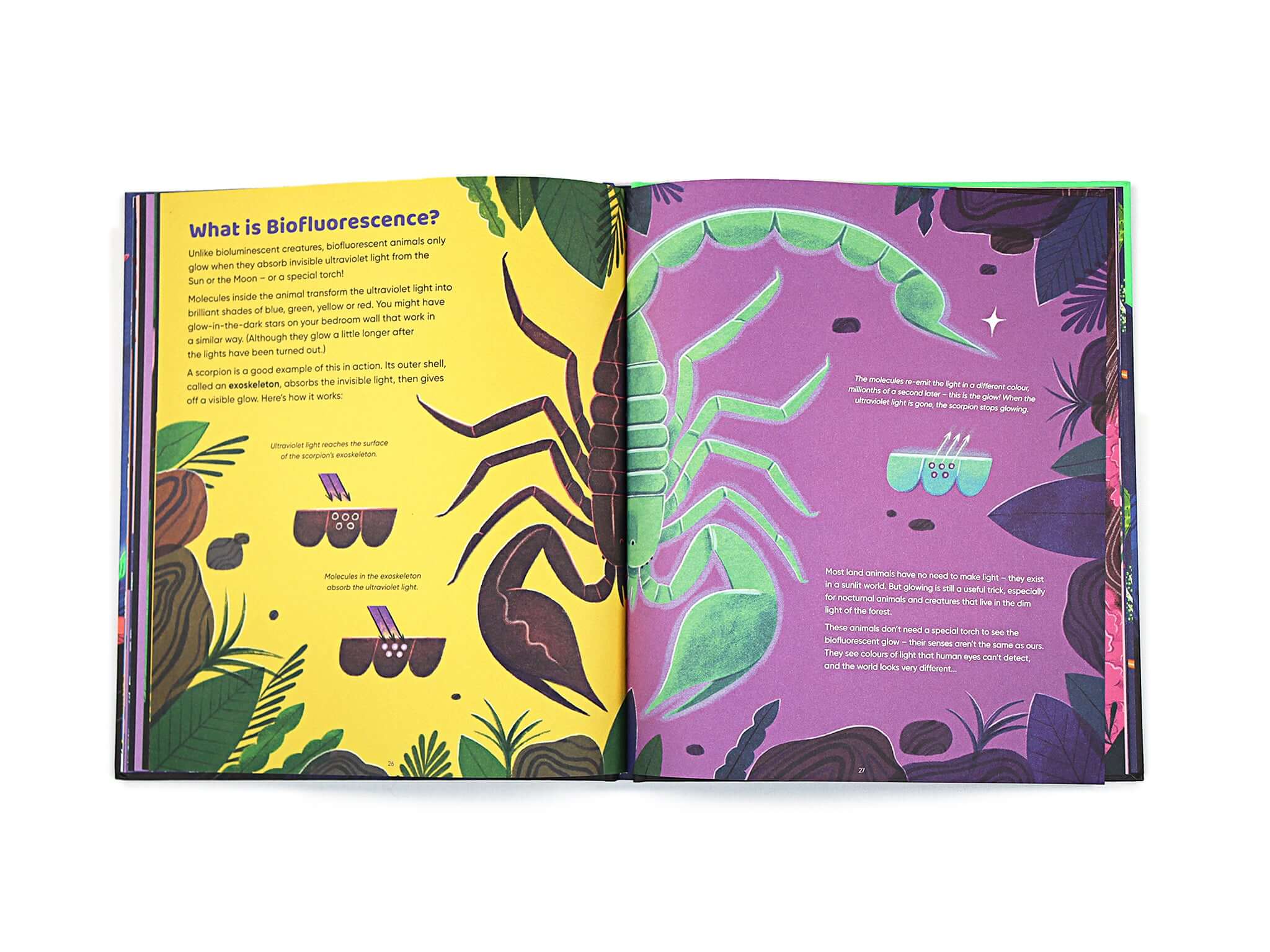 From fireflies and sea turtles to puffins (yes, puffins!), scorpions and squirrels, this beautifully illustrated non-fiction picture book reveals a hidden world of amazing glowing animals. How do they glow? And what is the brightest creature of all? Read on to find out all sorts of fascinating facts about these incredible creatures.